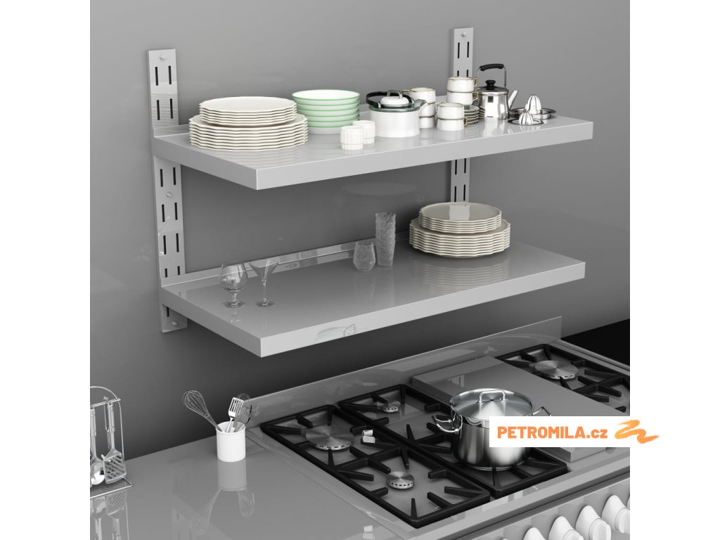 Naše 2patrová nástěnná police z nerezové oceli je nejen stylová, ale také velmi praktická a ideálně se hodí pro všechny, kdo potřebují v kuchyní více úložného prostoru. Nabízí perfektní úložné řešení pro talíře, nádobí či jiné kuchyňské náčiní.