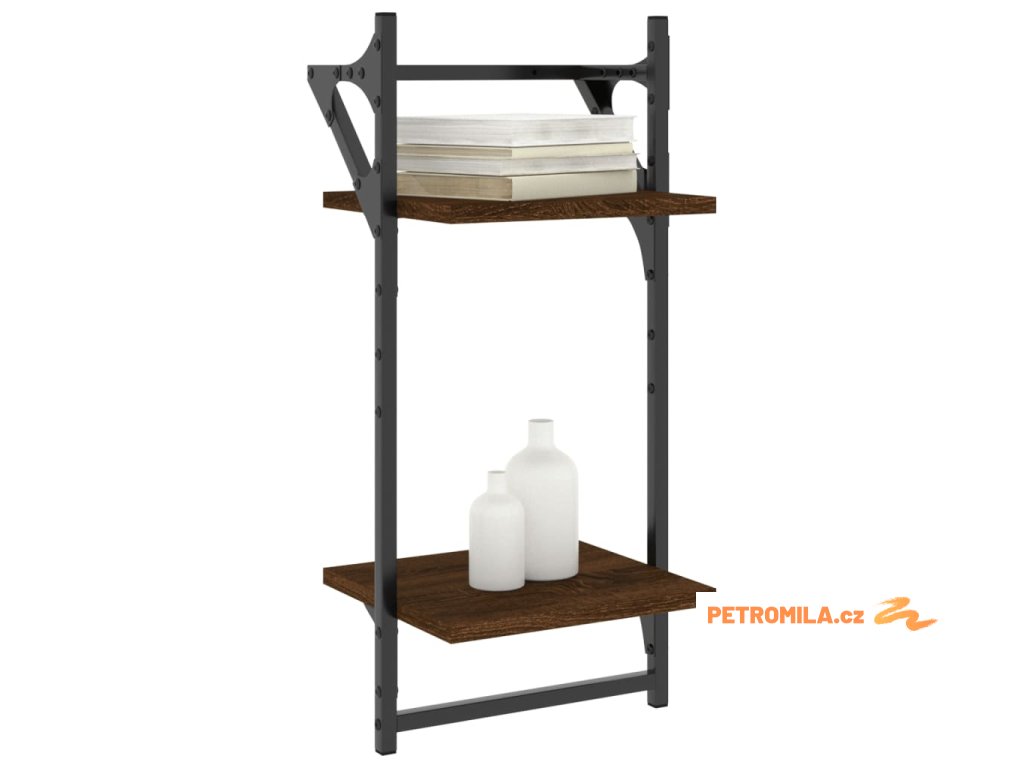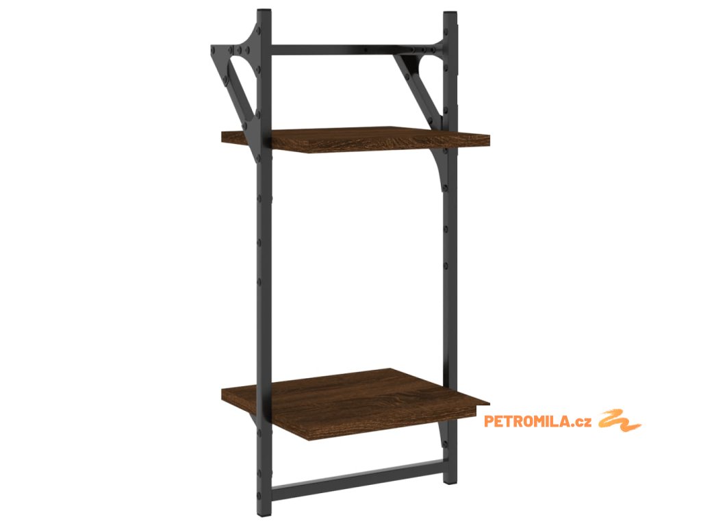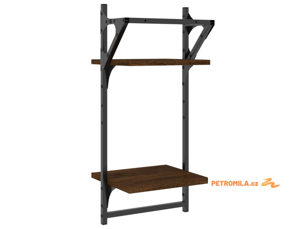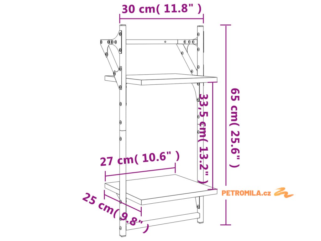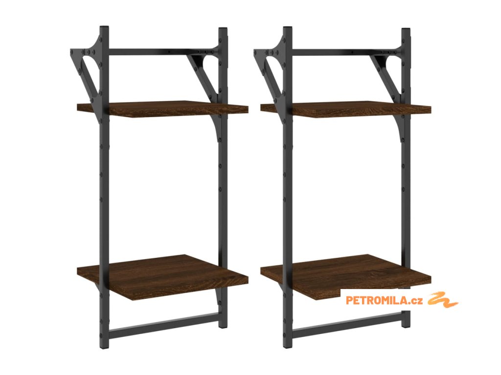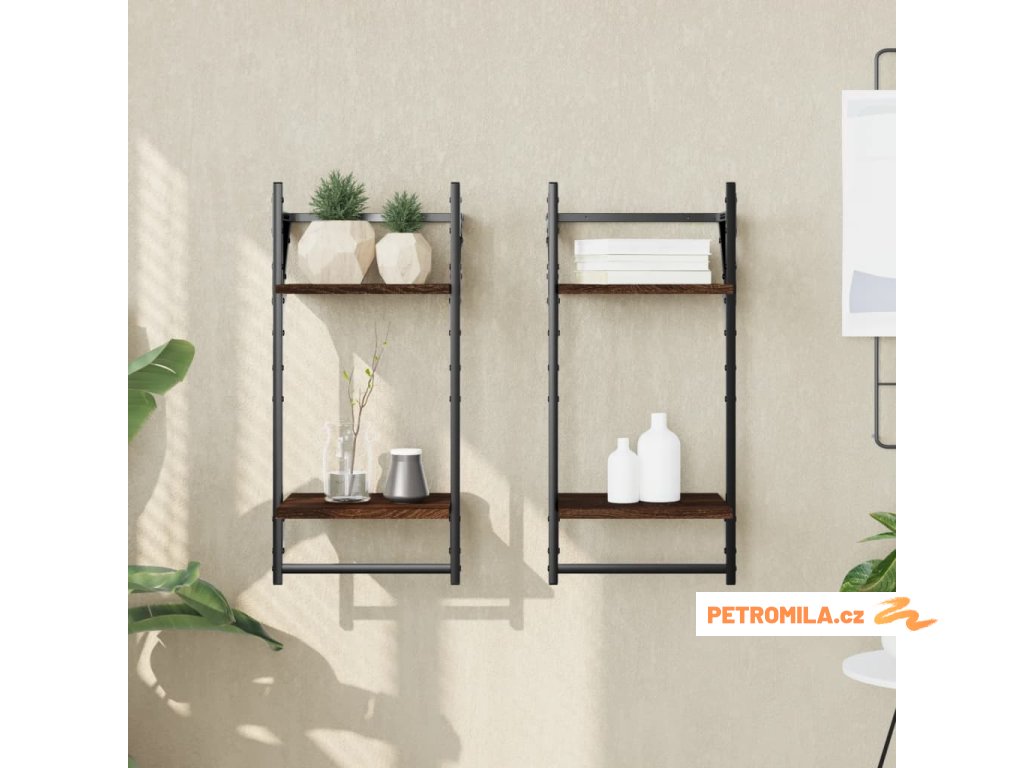 2patrové nástěnné police s tyčemi 2 ks hnědý dub 30x25x65 cm