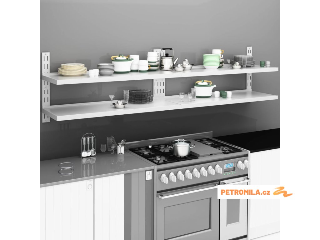 Naše sada 2patrových nástěnných polic z nerezové oceli je nejen stylová, ale také velmi praktická a ideálně se hodí pro všechny, kdo potřebují v kuchyní více úložného prostoru. Nabízí perfektní úložné řešení pro talíře, nádobí či jiné kuchyňské náčiní.