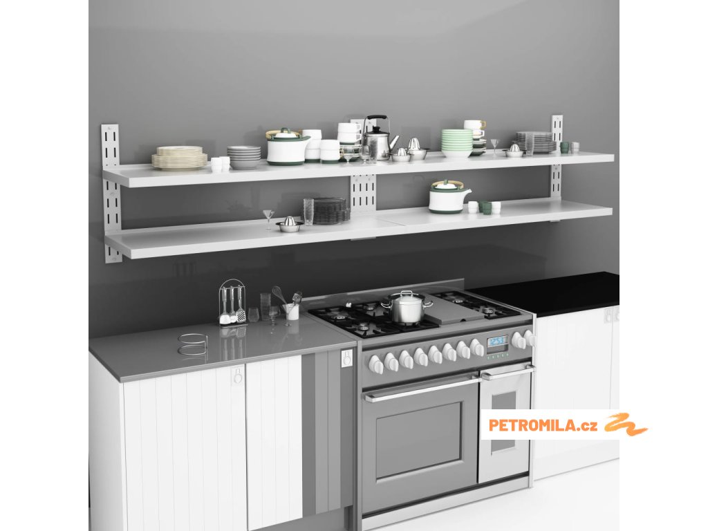 Naše sada 2patrových nástěnných polic z nerezové oceli je nejen stylová, ale také velmi praktická a ideálně se hodí pro všechny, kdo potřebují v kuchyní více úložného prostoru. Nabízí perfektní úložné řešení pro talíře, nádobí či jiné kuchyňské náčiní.