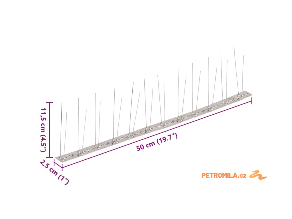 Jedná se o humánní, neškodnou, snadno použitelnou a vysoce účinnou metodu odpuzování ptáků. Hroty jsou vyrobené z vysoce kvalitní nerezové oceli, takže jsou odolné proti povětrnostním vlivům a vodě.