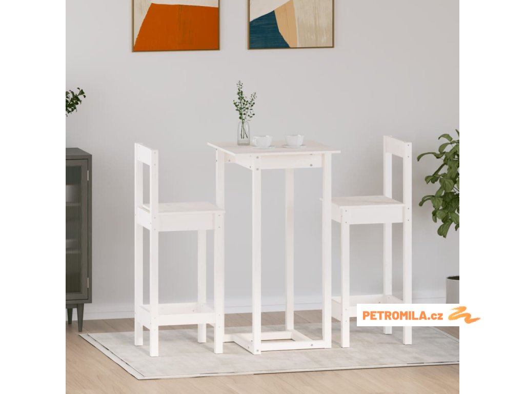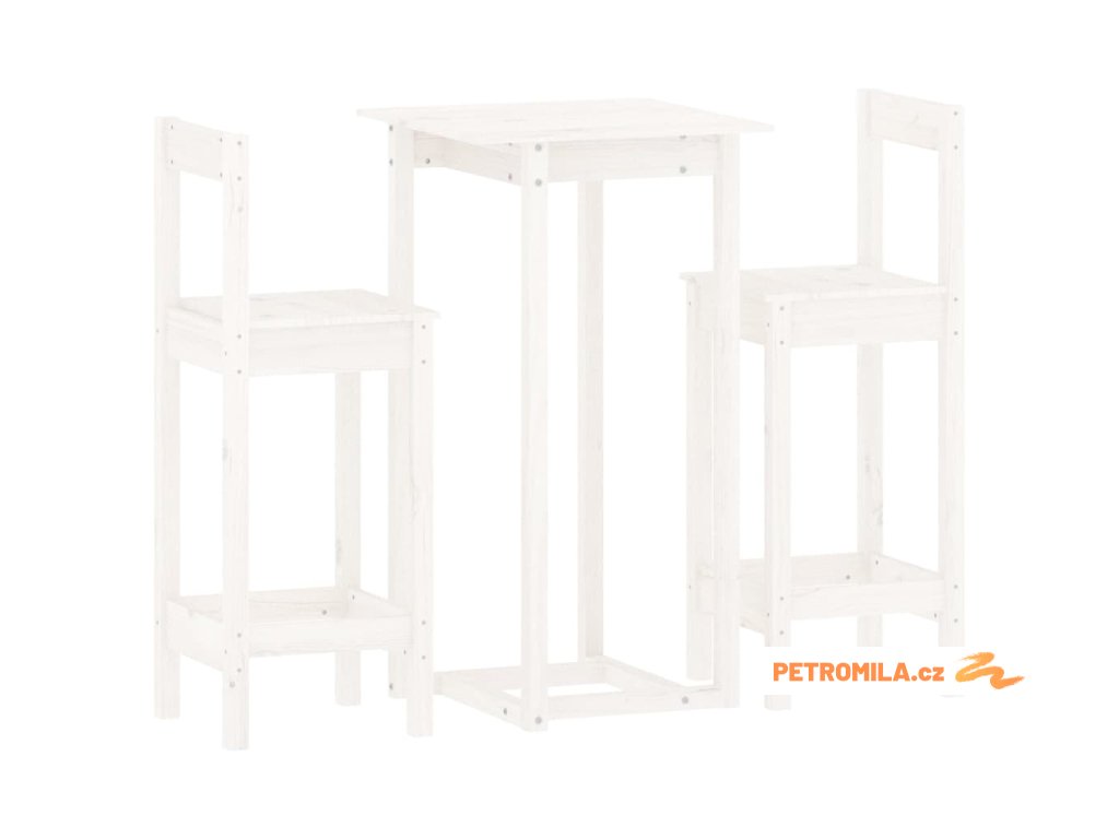 3 dílný barový set bílý masivní borové dřevo