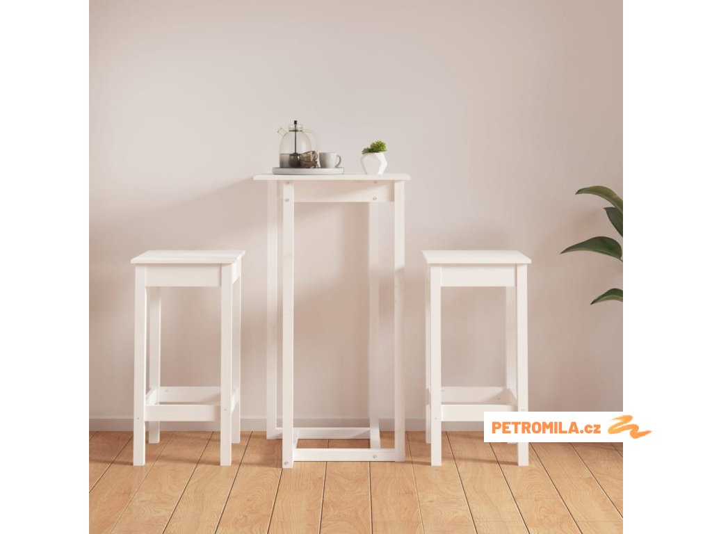 3 dílný barový set bílý masivní borové dřevo