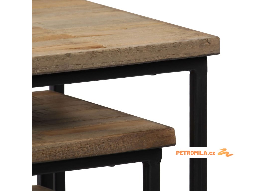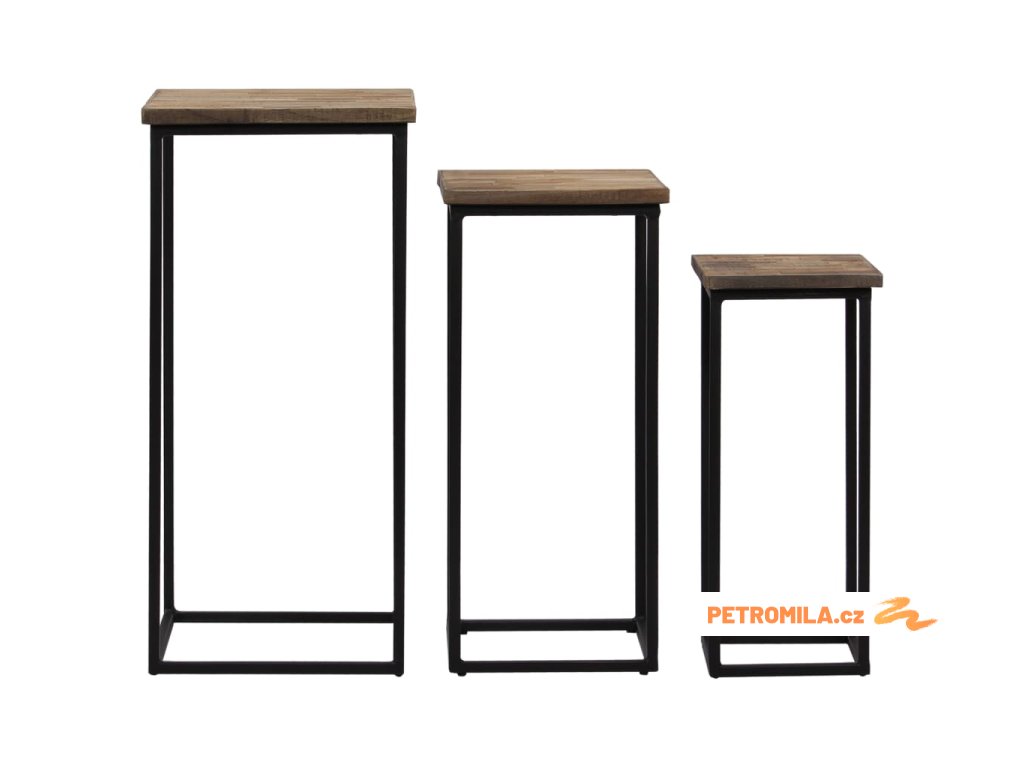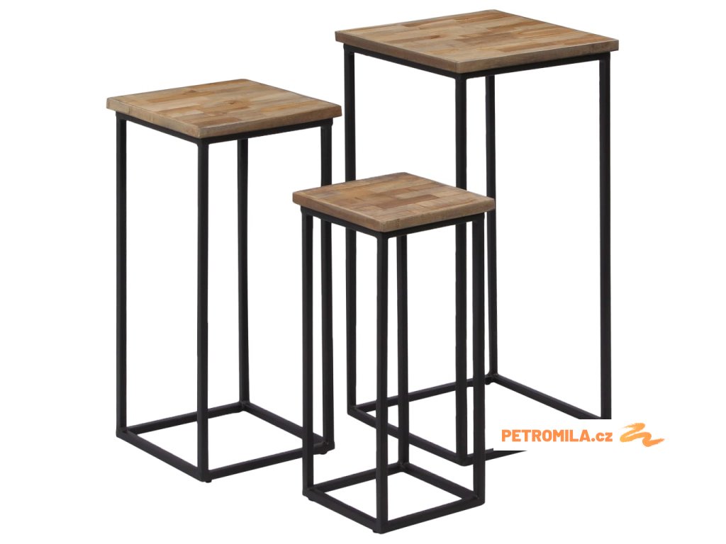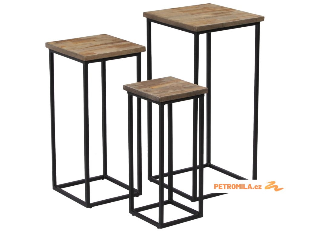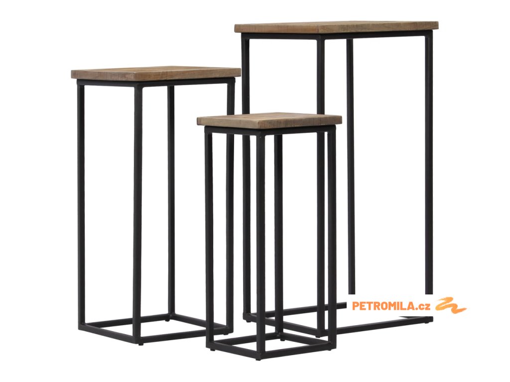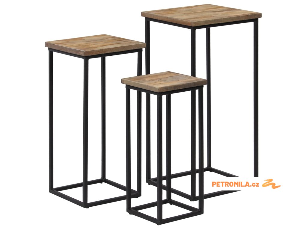 Sada stolků na květináče je vyrobená z recyklovaného teakového dřeva, které jí propůjčuje své přírodní vlastnosti. Nejen, že je pevné a odolné, ale zároveň také krásně vypadá. Robustní ocelový rám dodává stolkům na stabilitě a bytelnosti. Každá fáze výrobního procesu je prováděna s mimořádnou péčí, ať už se jedná o sestavení, leštění anebo lakování. Na stabilní a pevné horní desce si můžete vystavit vázy, květináče nebo jiné ozdoby. Zručné řemeslné zpracování podtrhuje industriální vzhled stojanů. Jejich sestavení je snadné. Balení obsahuje 3 stojany na květiny různých velikostí.
