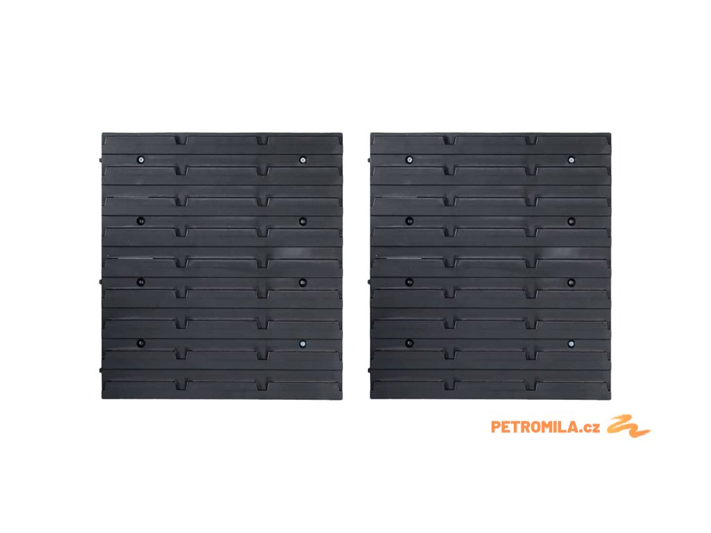 Tento funkční regál se stohovatelnými boxy nabízí celou řadu možností pro uložení malých součástek, jako jsou šrouby, hřebíky, matice, objímky, spoje apod. Do 2 pevných nástěnných panelů jsou zasazené různé upínače a držáky a 14 zásobníků, které si můžete označit, abyste měli lepší přehled o jejich obsahu. Jednotlivé boxy je také možné samostatně vytahovat a naskládat je na sebe. Sada zásobníků se dá libovolně rozšiřovat. Její upevnění na stěnu garáže nebo kůlny je snadné. Set skladovacích zásobníků si můžete přizpůsobit dle vlastních potřeb.