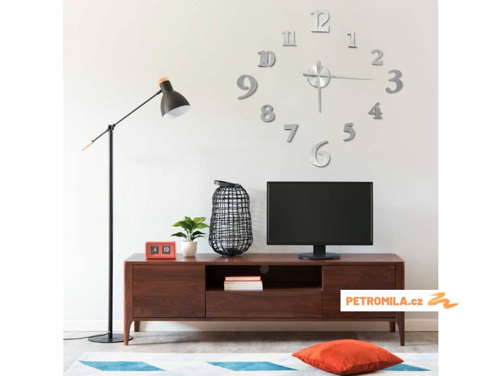 3D nástěnné hodiny moderní design stříbrné 100 cm XXL