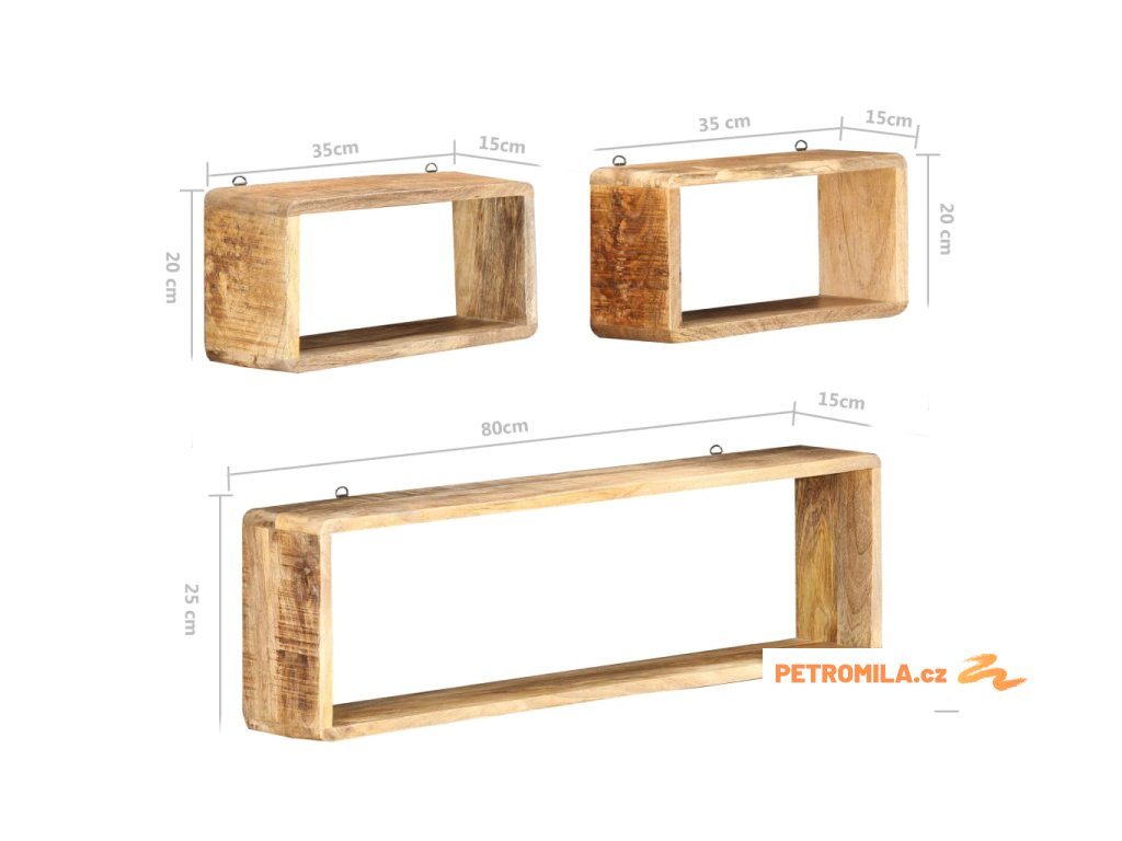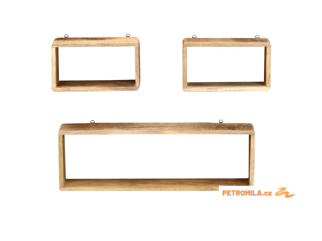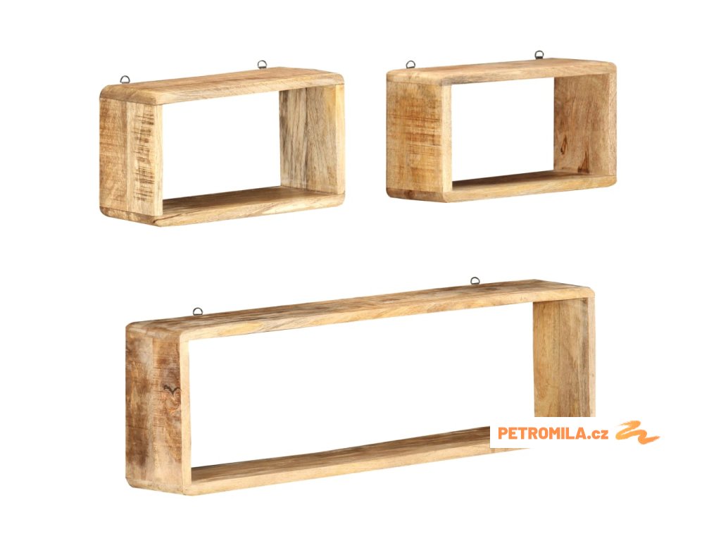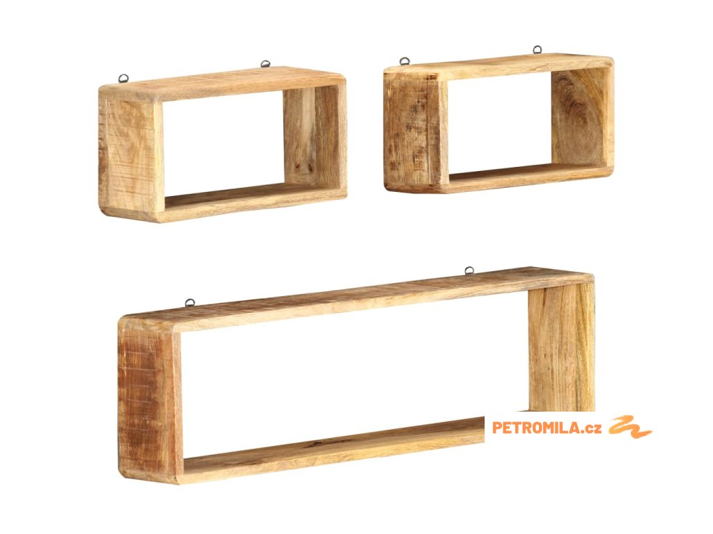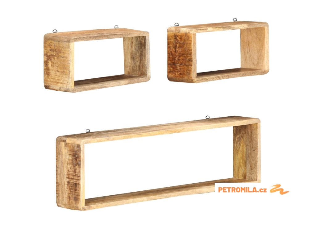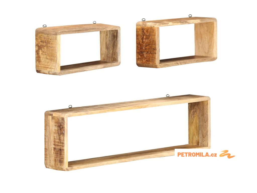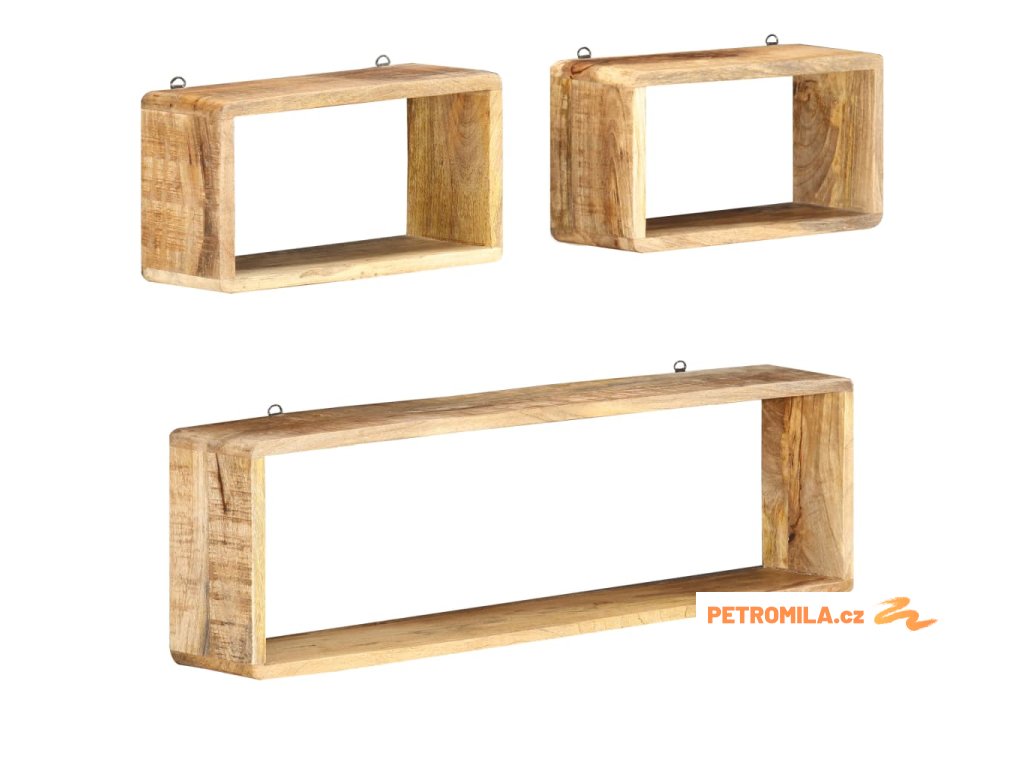 3dílná nástěnná sada krychlových polic masivní mangovník