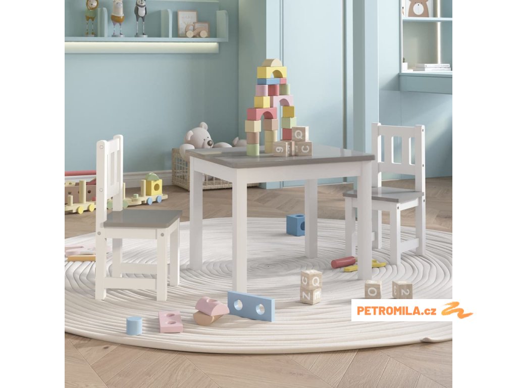 3dílná sada dětského stolu a židlí bílá a šedá MDF