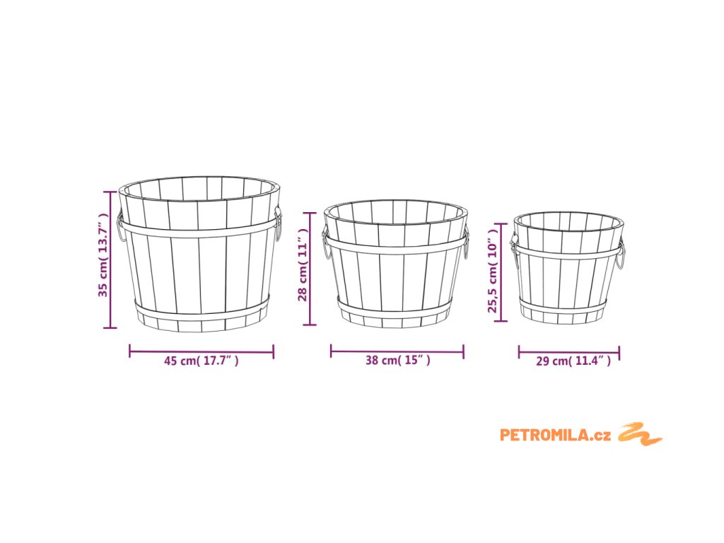 3dílná sada dřevěných truhlíků masivní jedlové dřevo