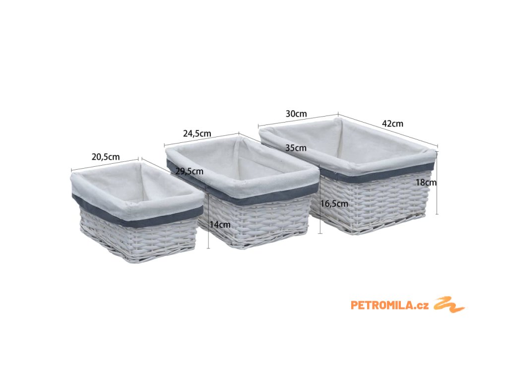 - Rozměry (velkého košíku): 42 x 30 x 18 cm (D x Š x V)