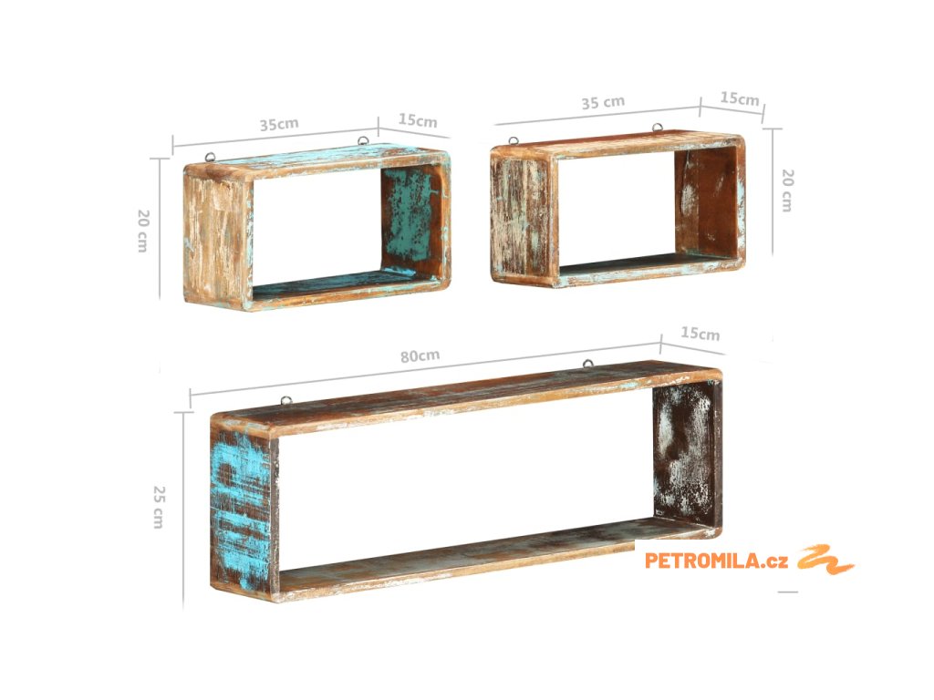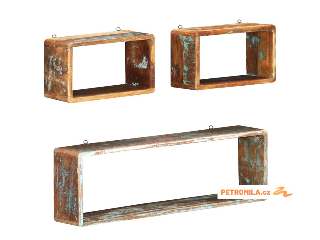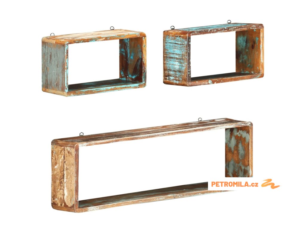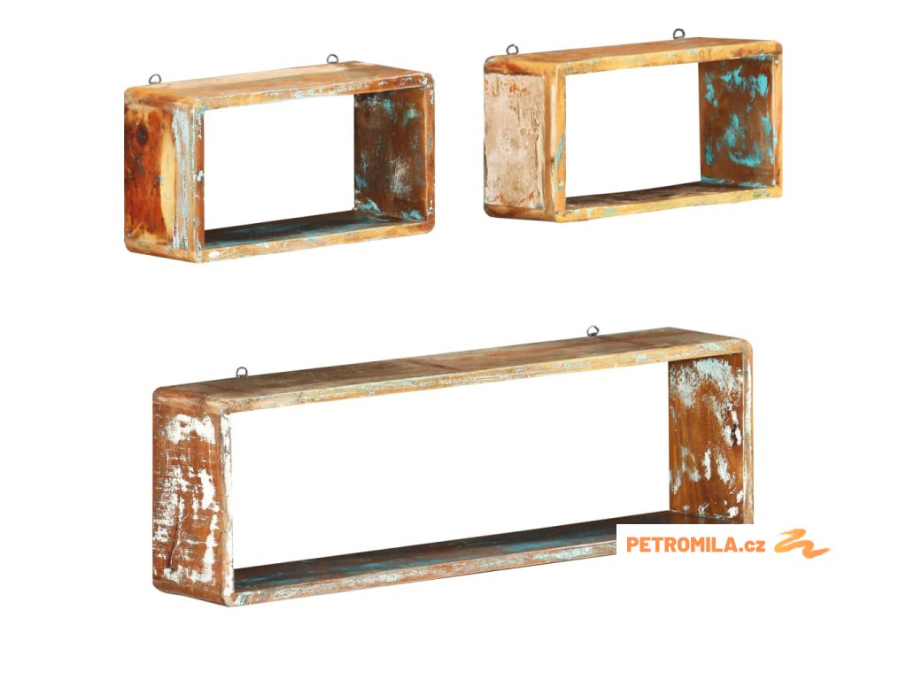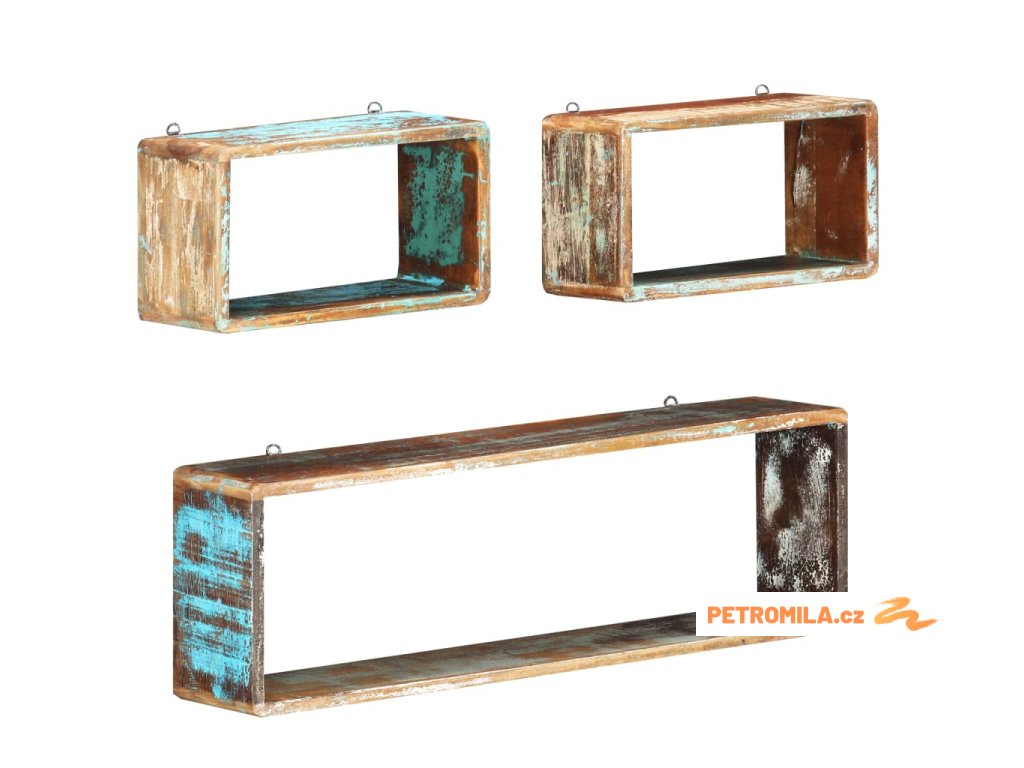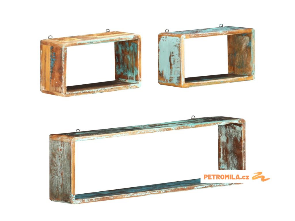 3dílná sada nástěnných polic kostek masivní recyklované dřevo