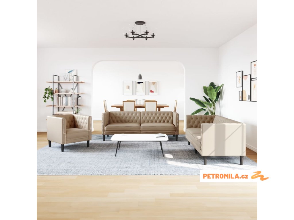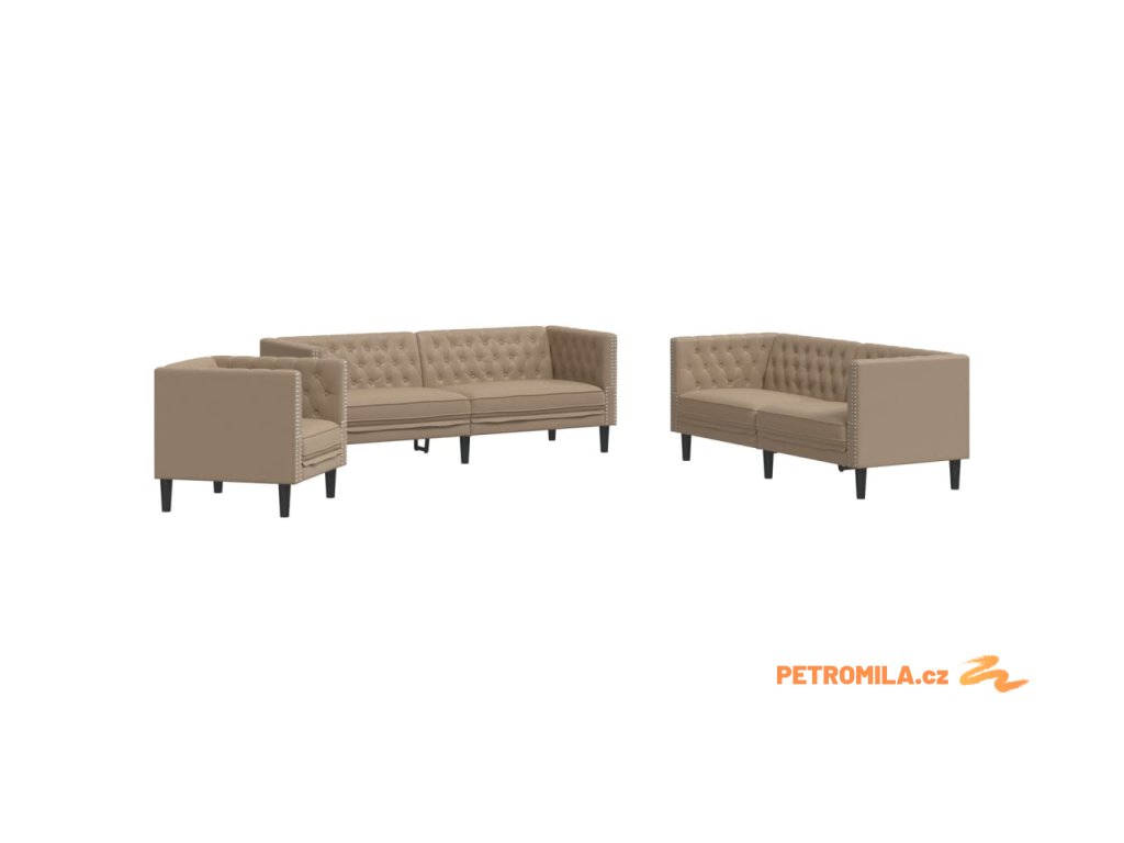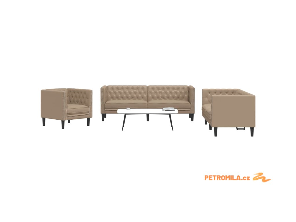 3dílná sedací souprava Chesterfield cappuccino umělá kůže
