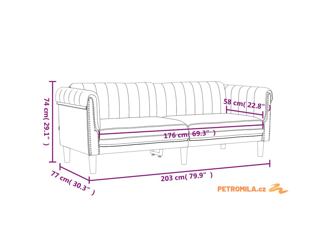 - Celkové rozměry: 203 x 77 x 74 cm (Š x H x V)