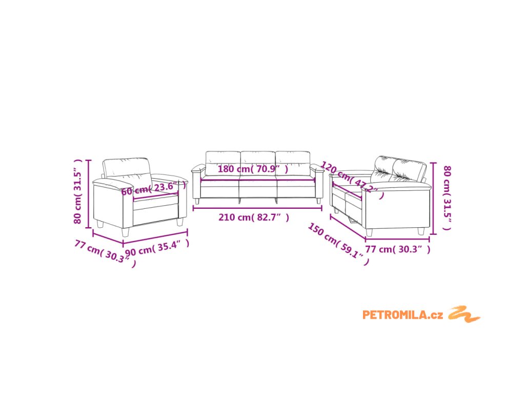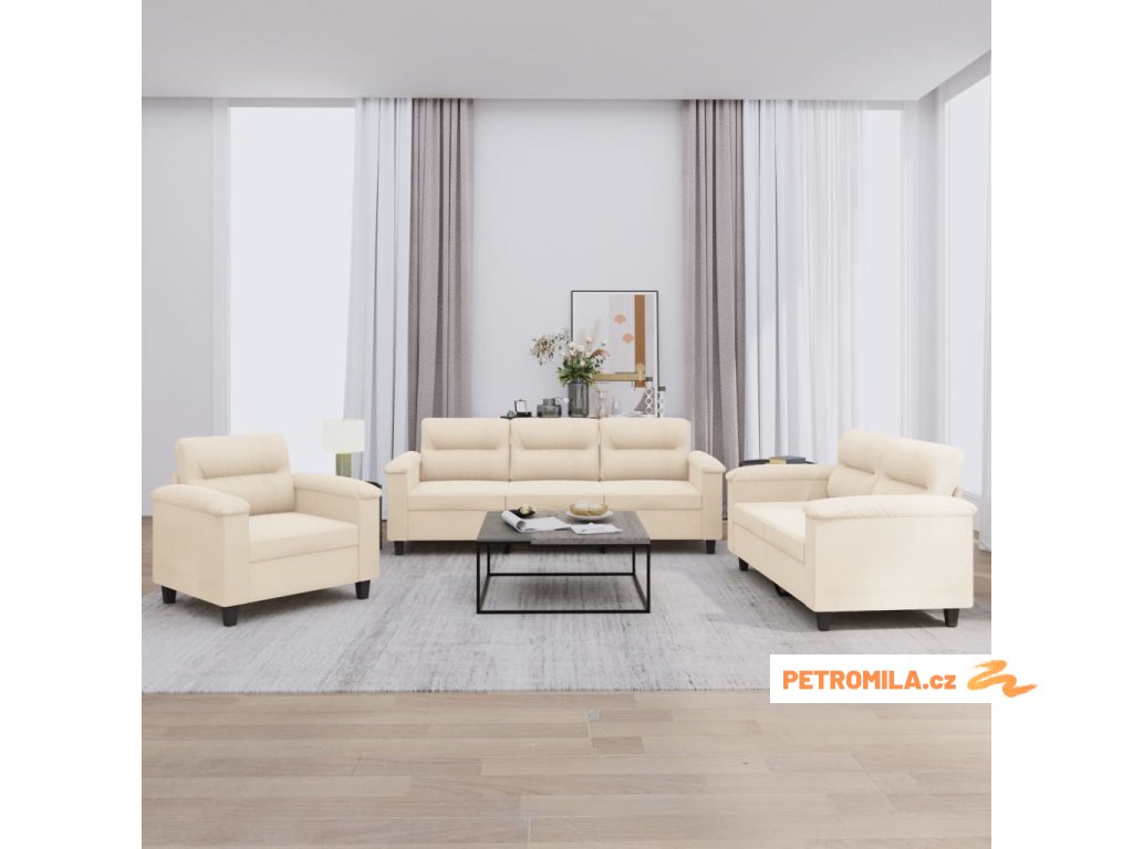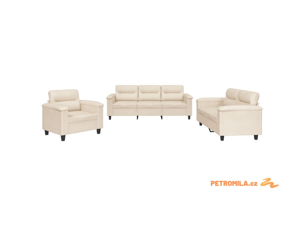 3dílná sedací souprava s poduškami béžová tkanina z mikrovlákna