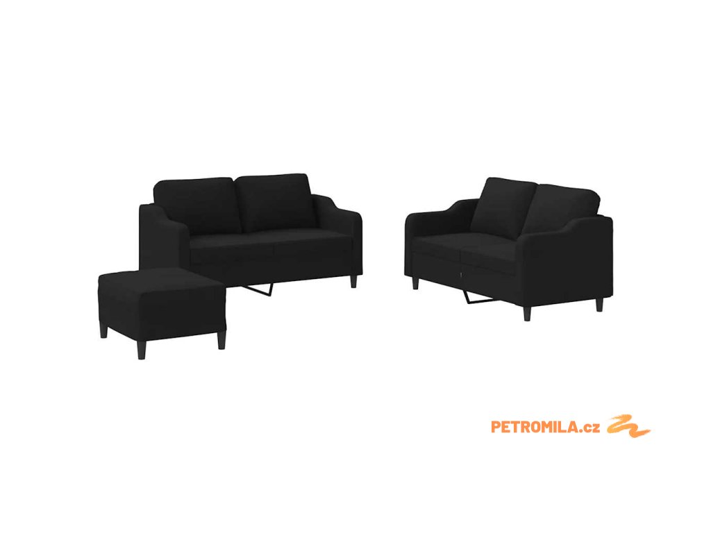 3dílná sedací souprava s poduškami černá textil