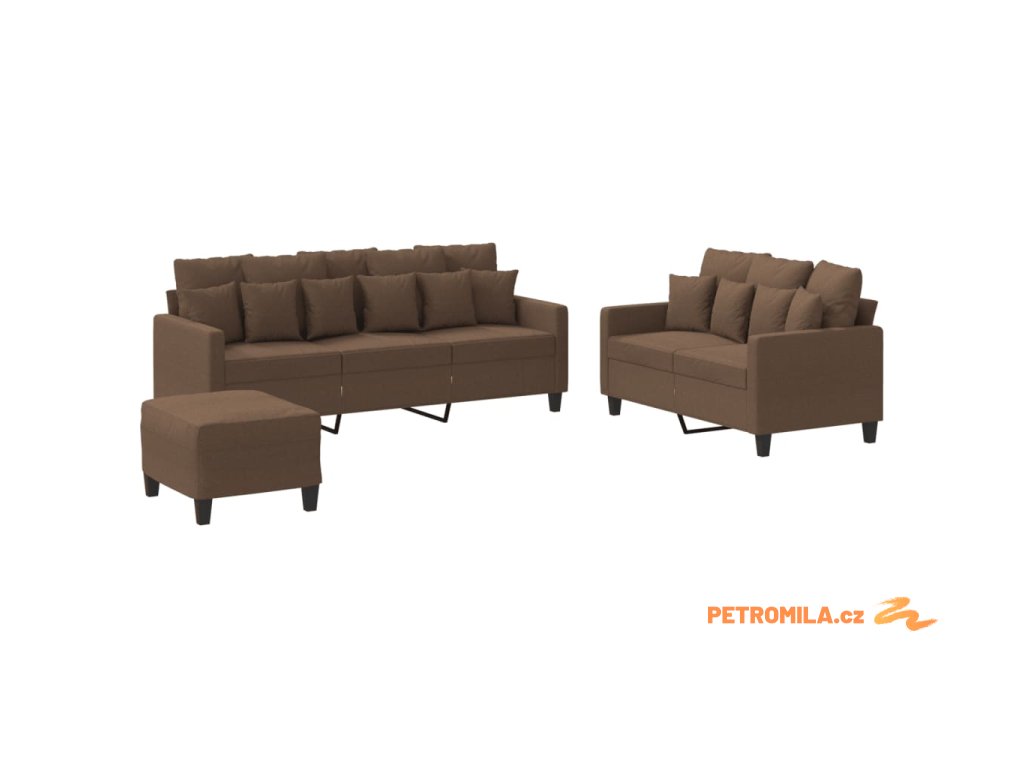 3dílná sedací souprava s poduškami hnědá textil