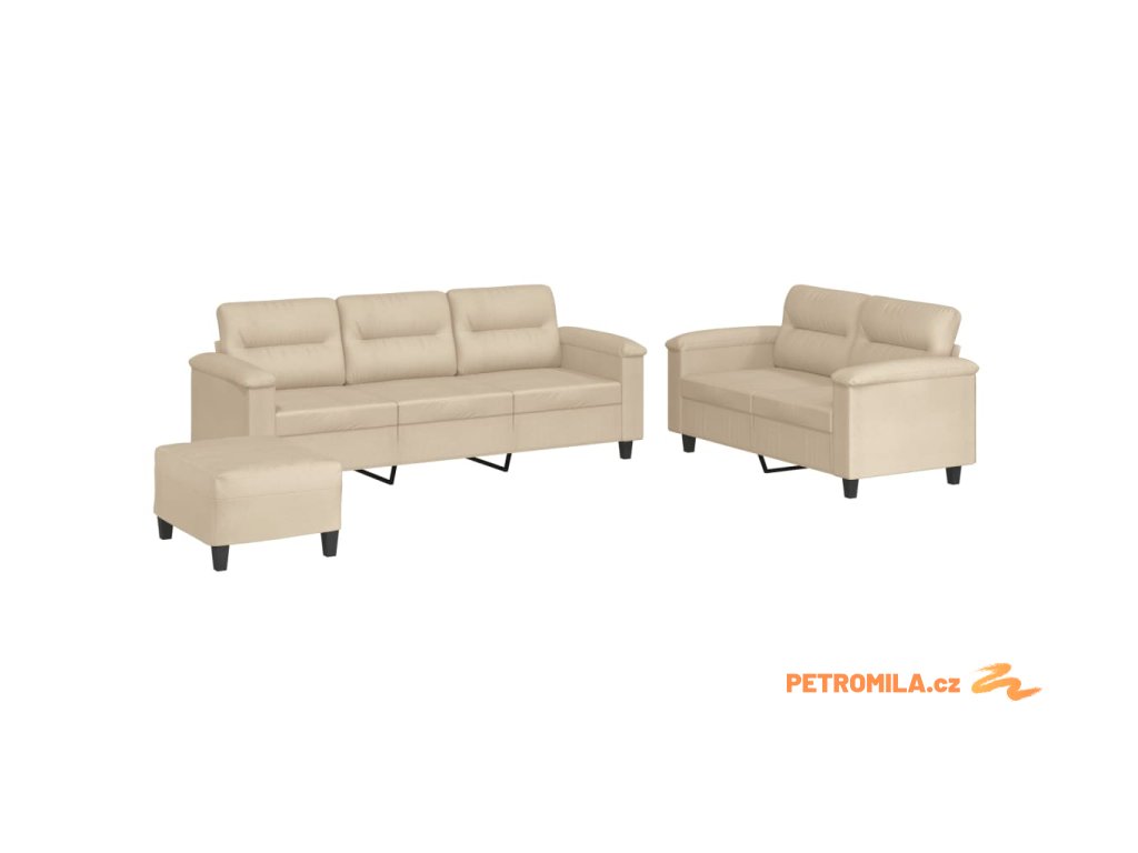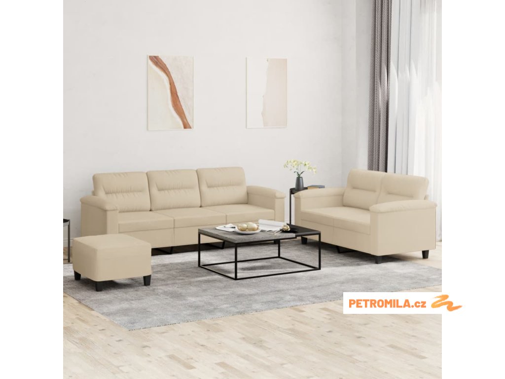 3dílná sedací souprava s poduškami krémová mikrovlákno