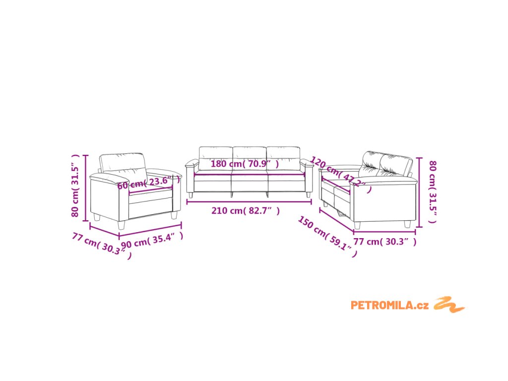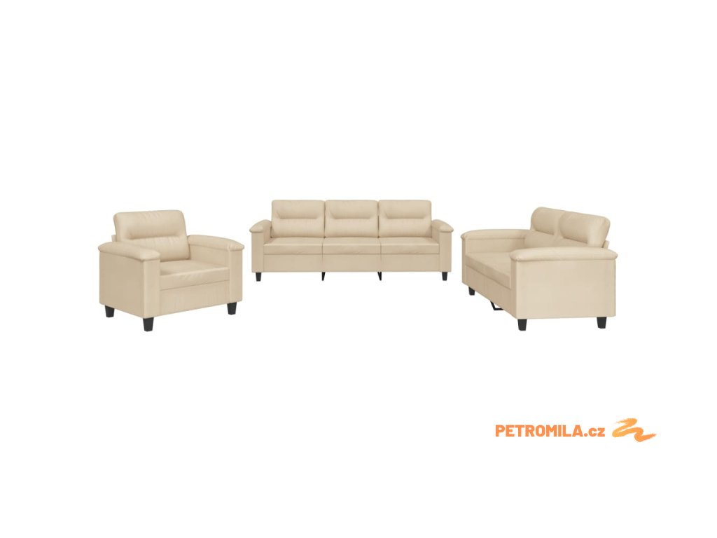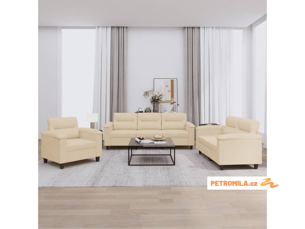 3dílná sedací souprava s poduškami krémová mikrovlákno