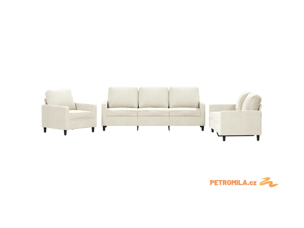 3dílná sedací souprava s poduškami krémová samet