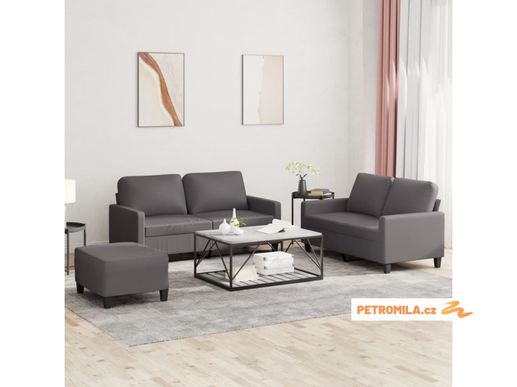 3dílná sedací souprava s poduškami šedá umělá kůže