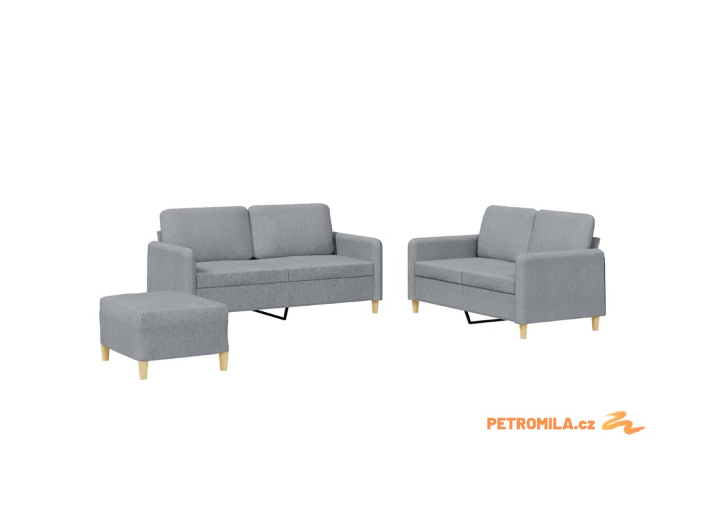 3dílná sedací souprava s poduškami světle šedá textil