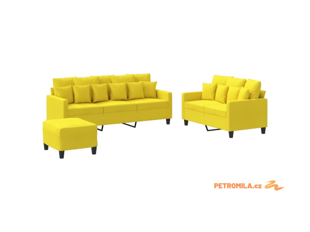 3dílná sedací souprava s poduškami světle žlutá textil