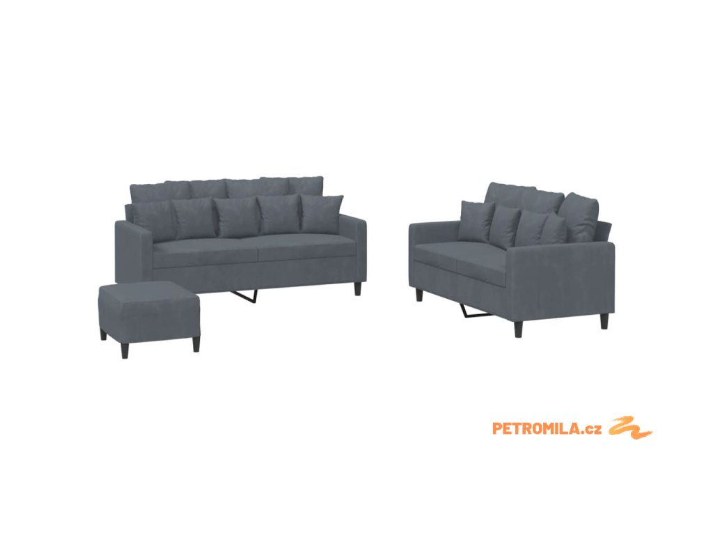 3dílná sedací souprava s poduškami tmavě šedá samet