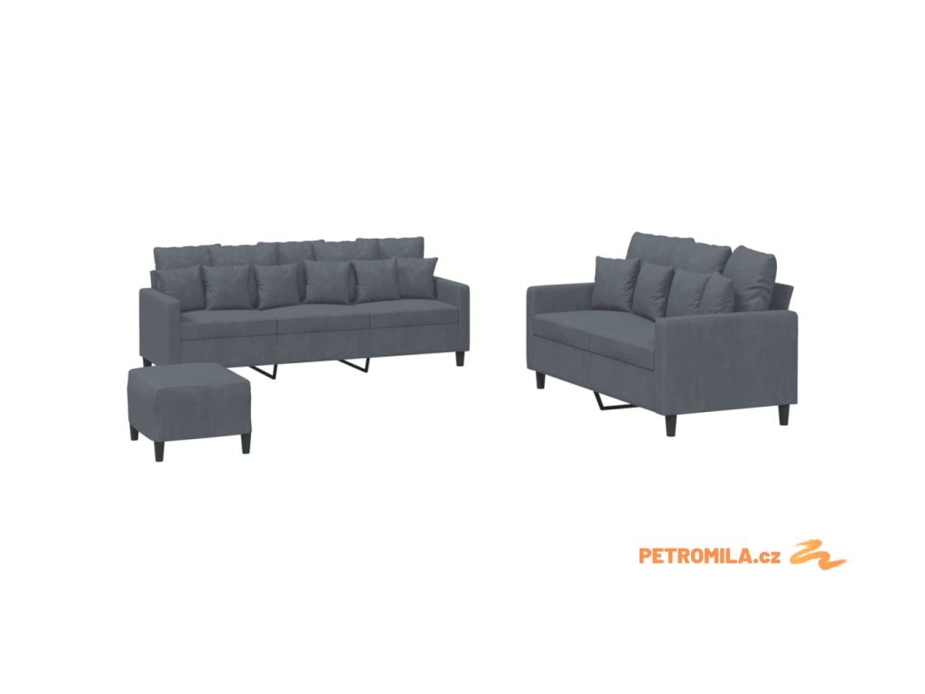 3dílná sedací souprava s poduškami tmavě šedá samet