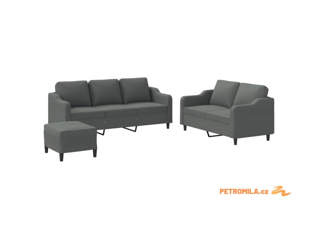 3dílná sedací souprava s poduškami tmavě šedá textil