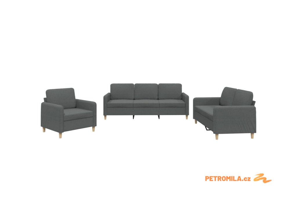 3dílná sedací souprava s poduškami tmavě šedá textil