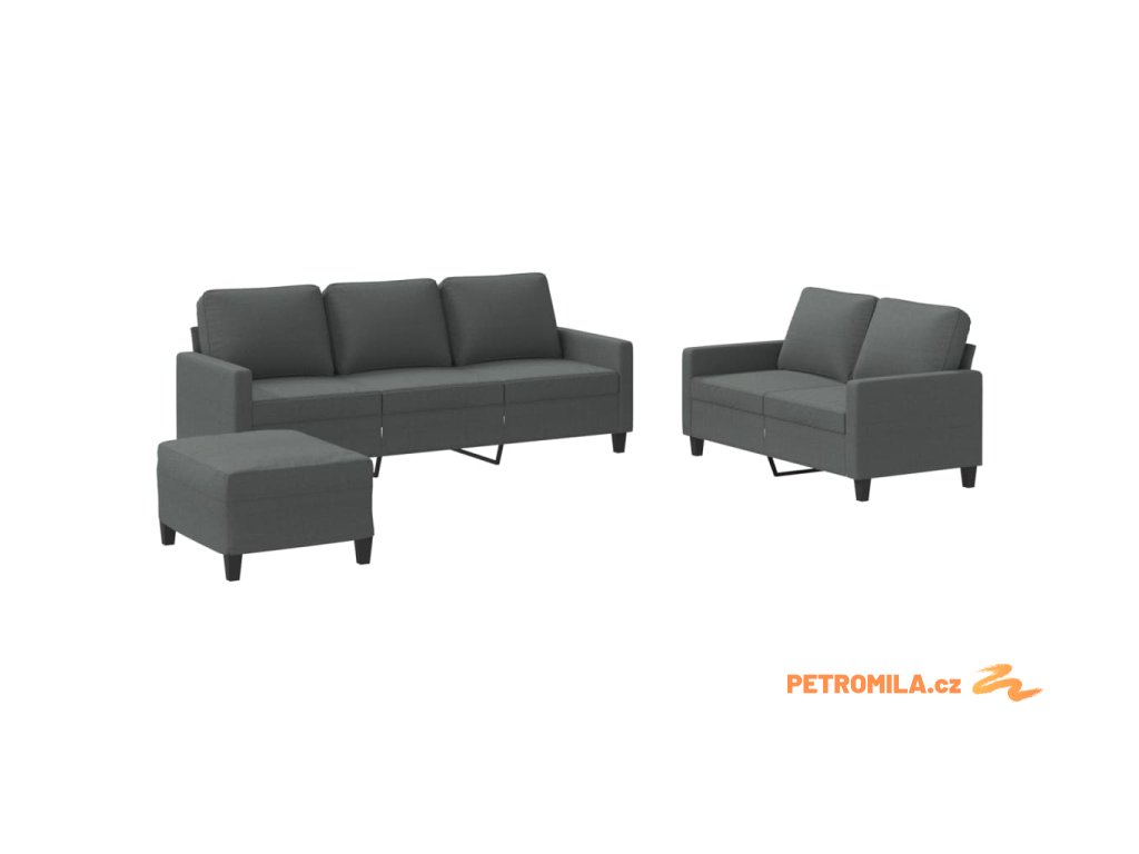 3dílná sedací souprava s poduškami tmavě šedá textil