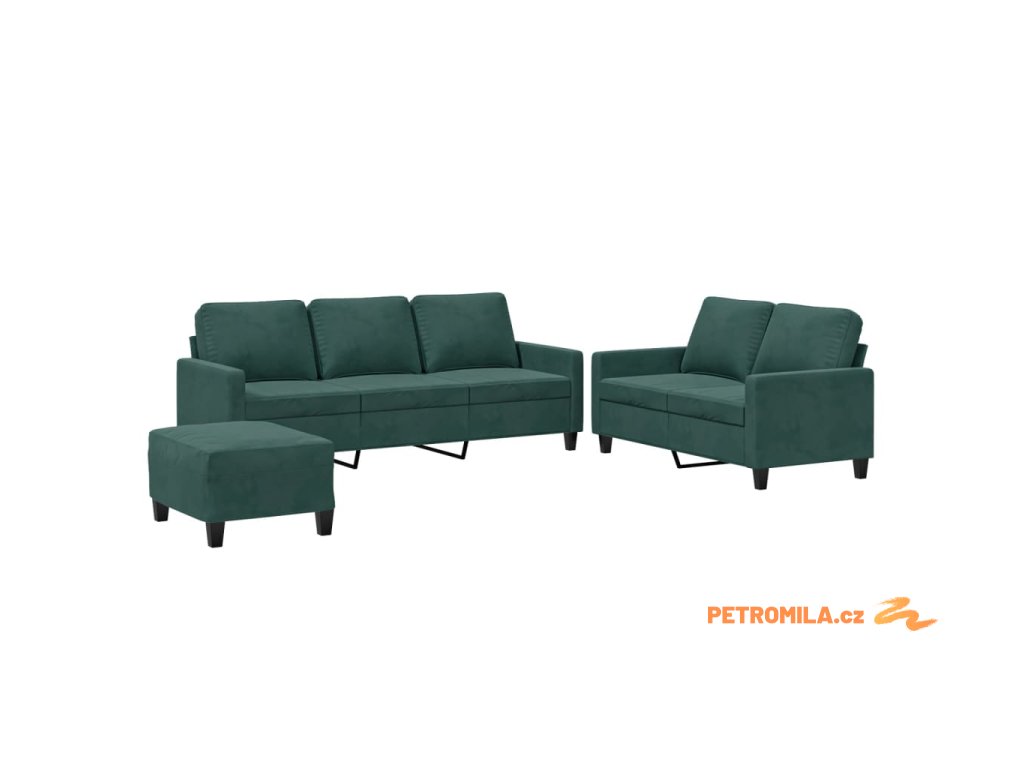 3dílná sedací souprava s poduškami tmavě zelená samet