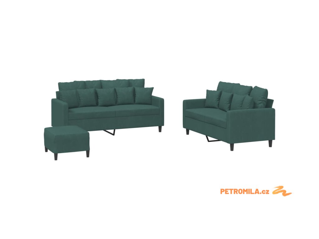 3dílná sedací souprava s poduškami tmavě zelená samet
