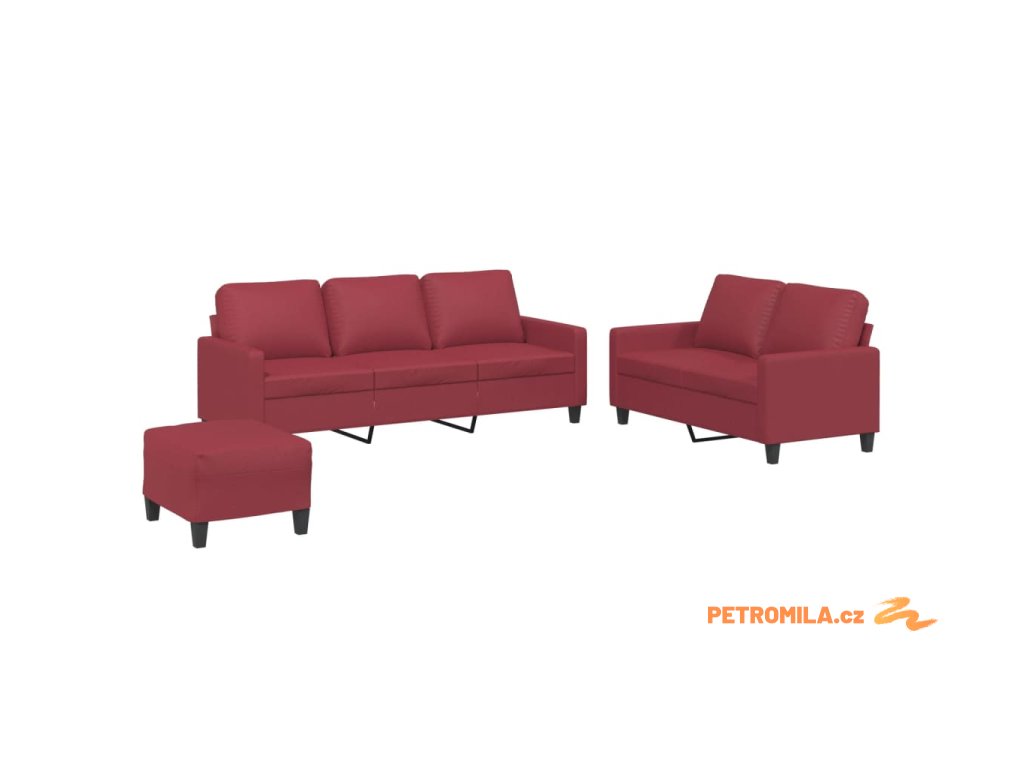 3dílná sedací souprava s poduškami vínová umělá kůže