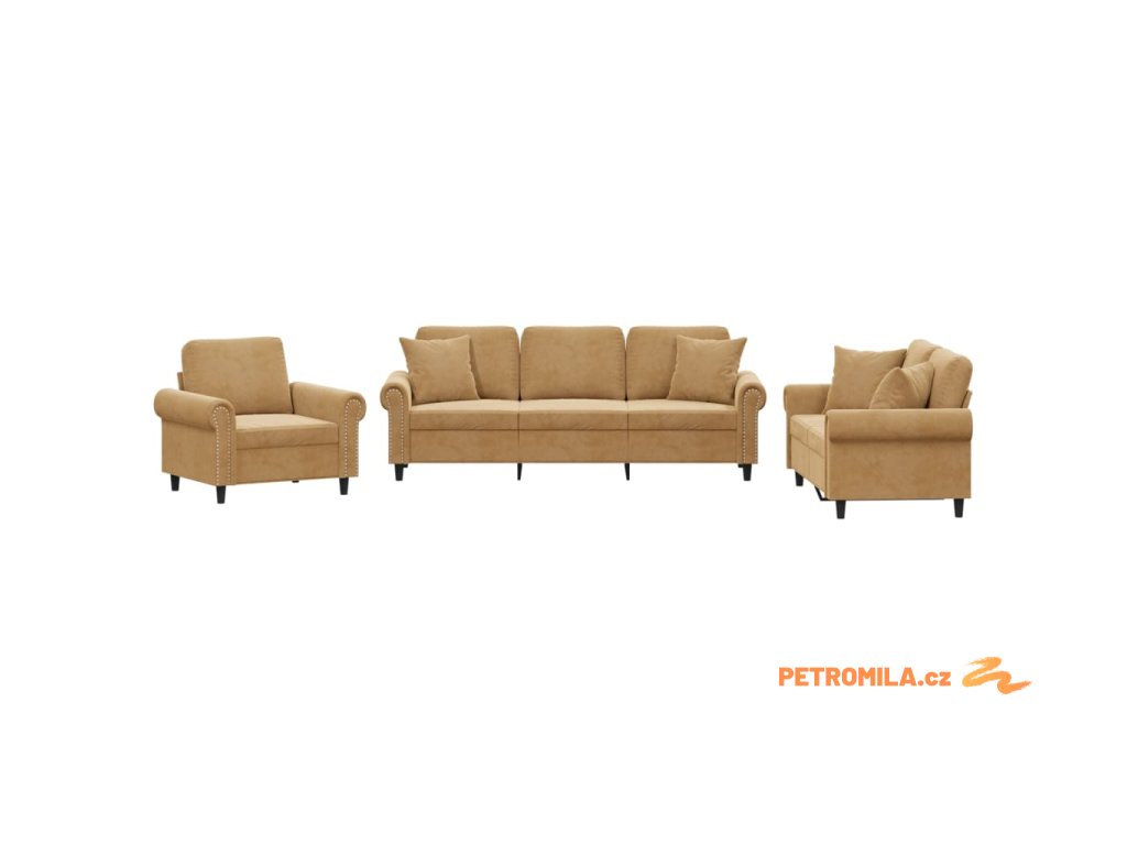 3dílná sedací souprava s polštáři hnědá samet
