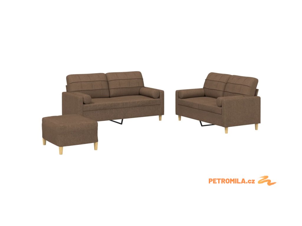 3dílná sedací souprava s polštáři hnědá textil