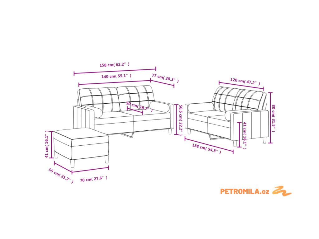 Tato sedací souprava je skvělým místem pro povídání, čtení, sledování televize nebo jen tak k relaxaci. Bude ústředním bodem vašeho interiéru.
