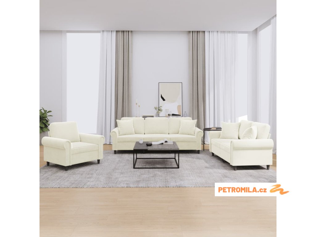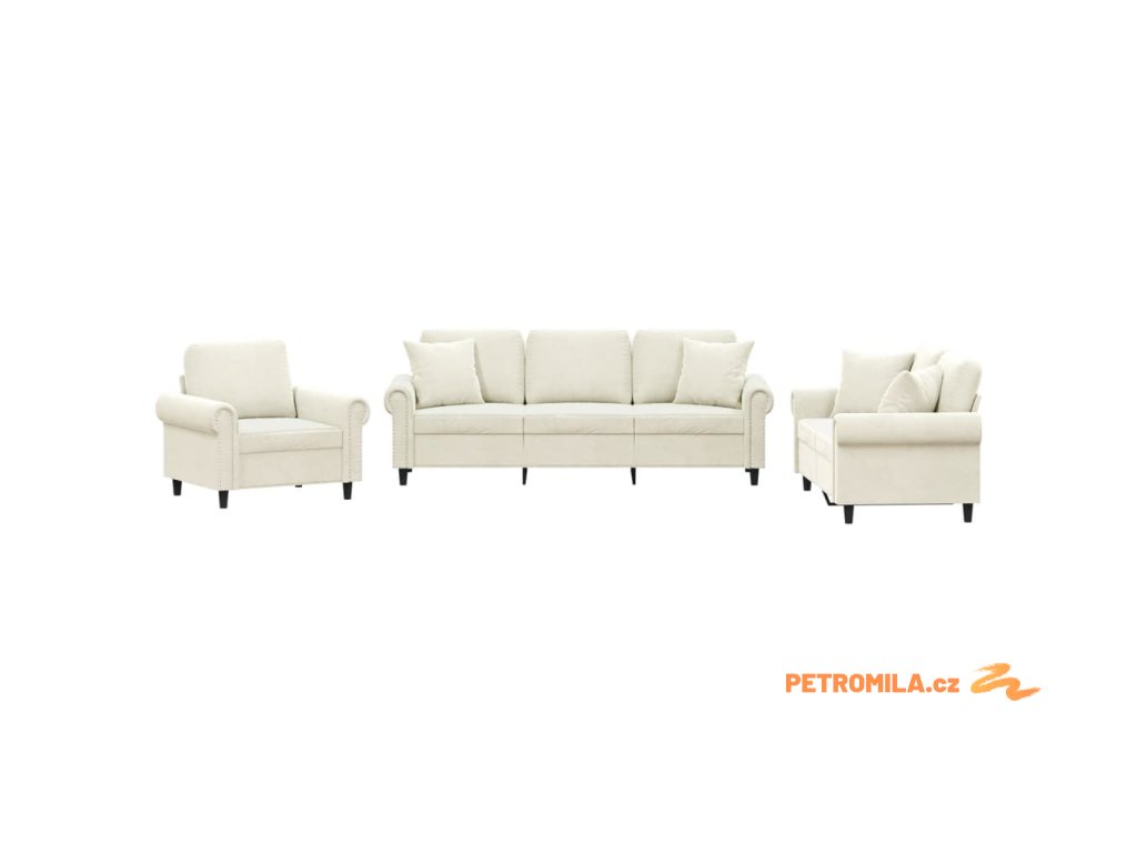 3dílná sedací souprava s polštáři krémová samet