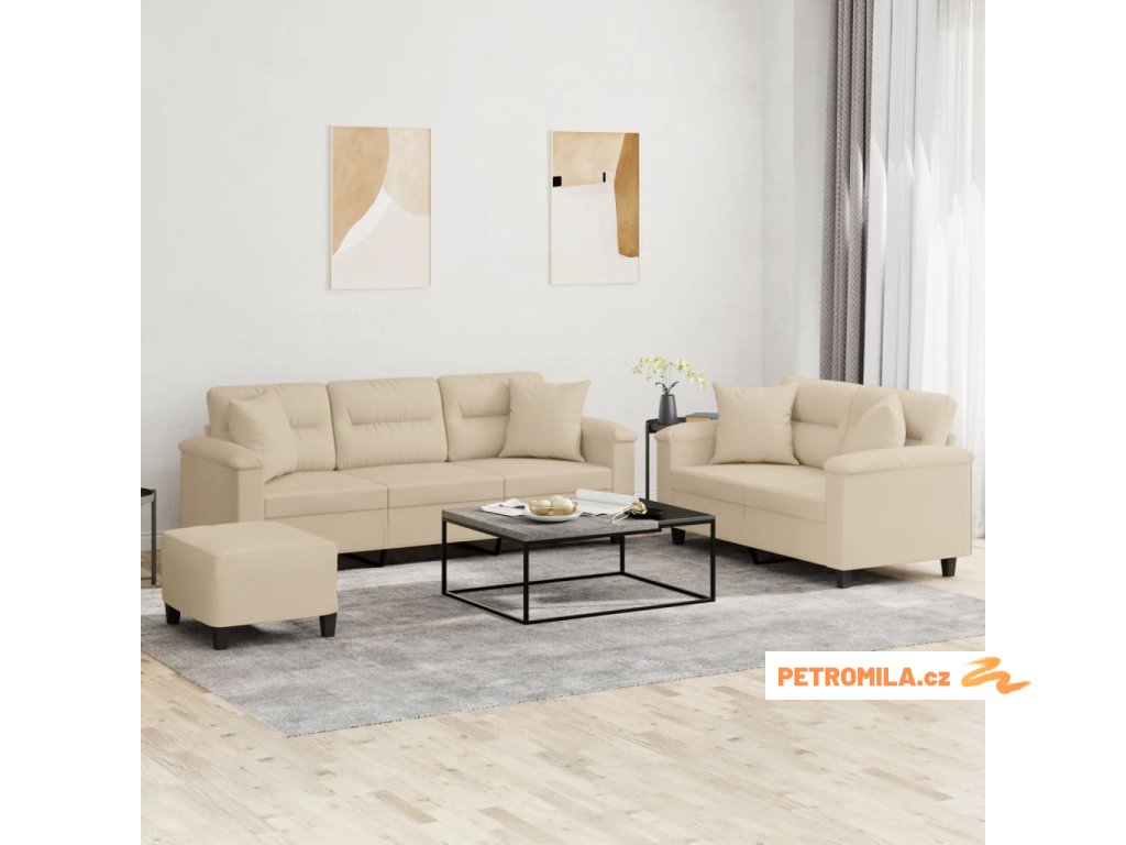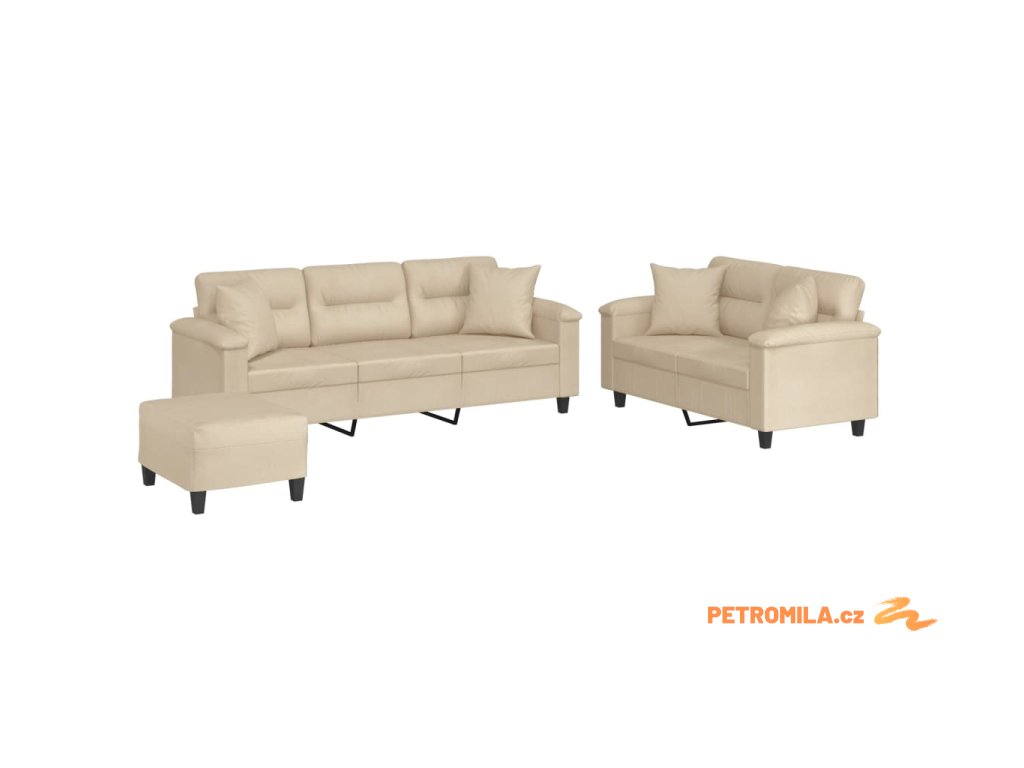 3dílná sedací souprava s polštáři krémová tkanina z mikrovlákna