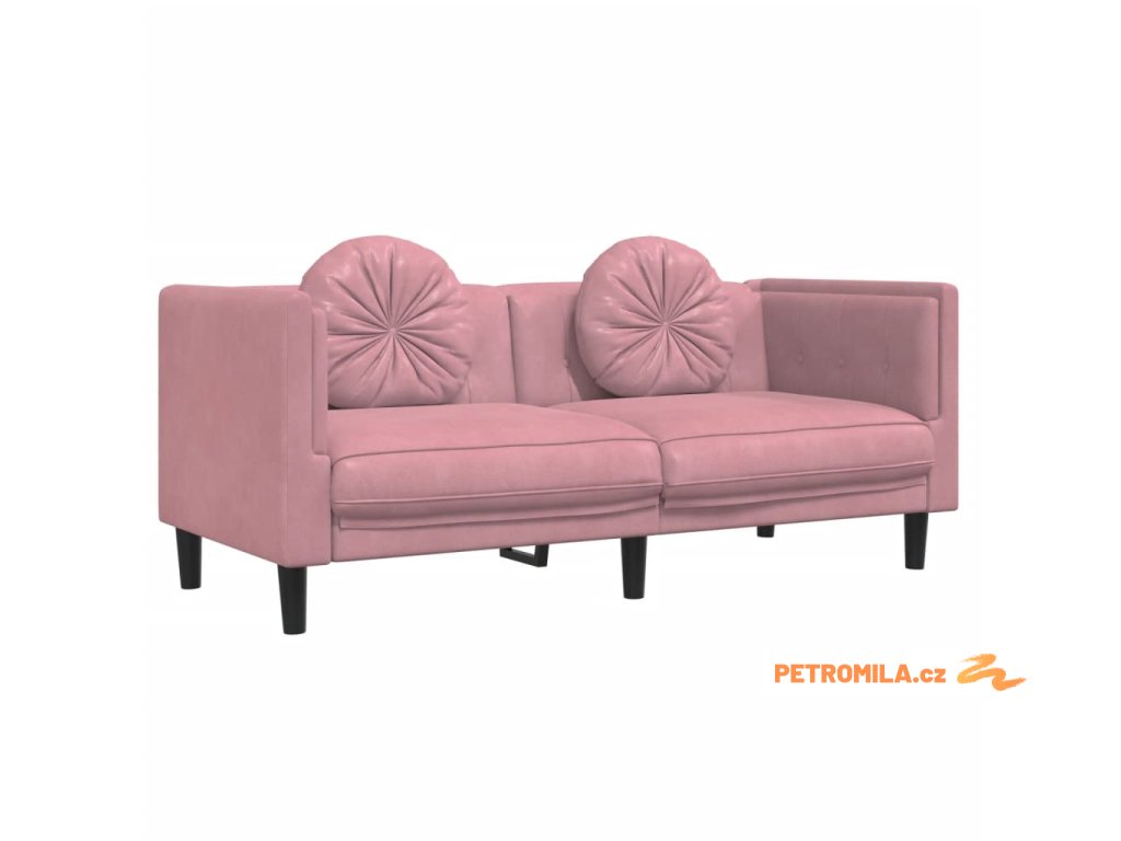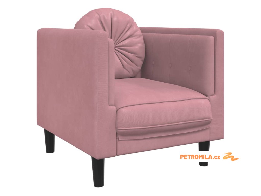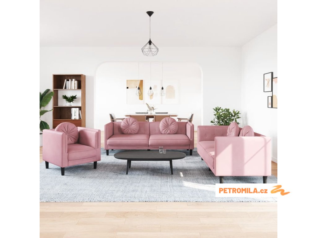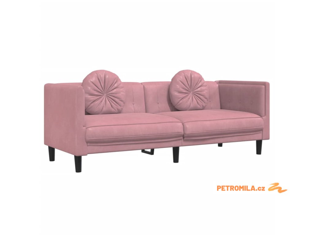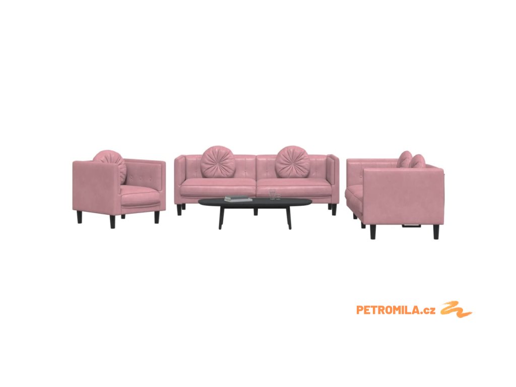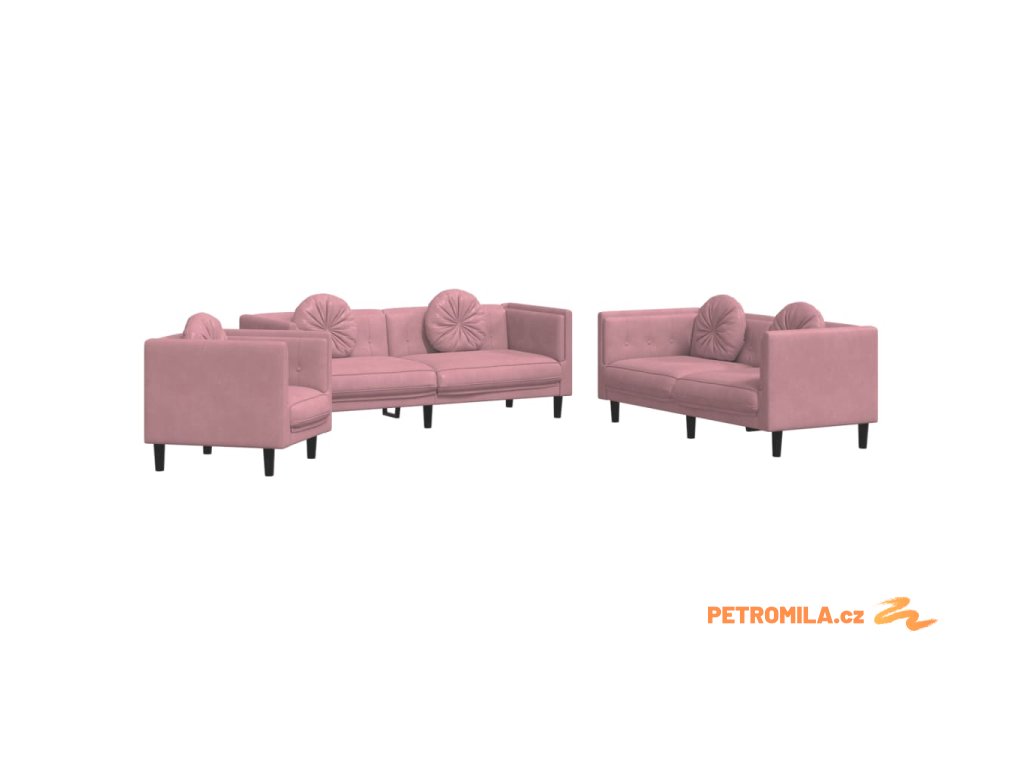 3dílná sedací souprava s polštáři růžová samet