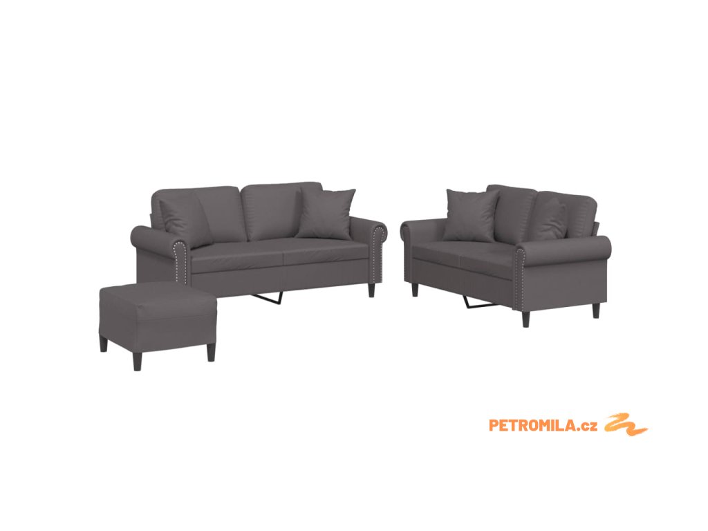 3dílná sedací souprava s polštáři šedá umělá kůže