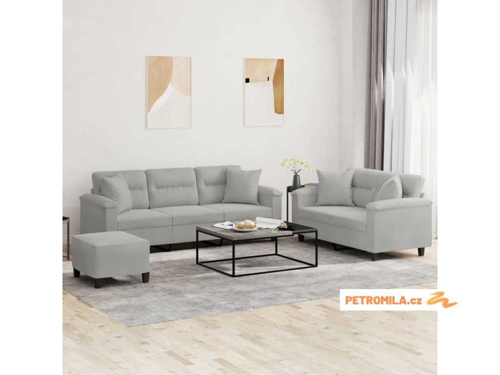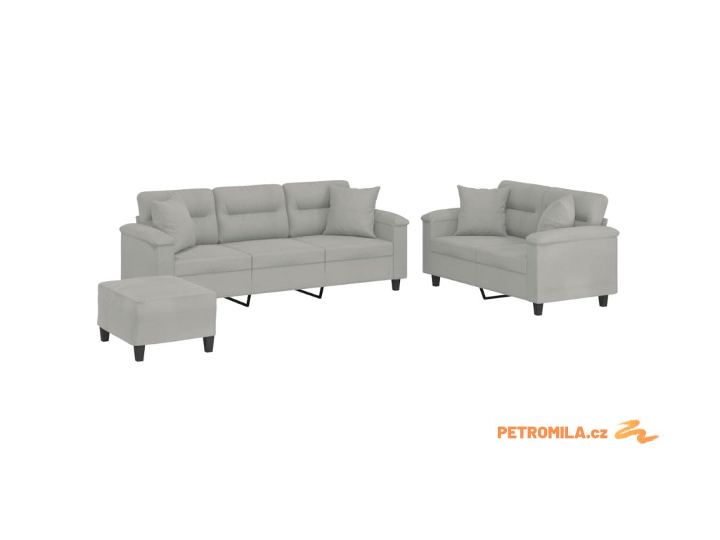 3dílná sedací souprava s polštáři světle šedá mikrovlákno