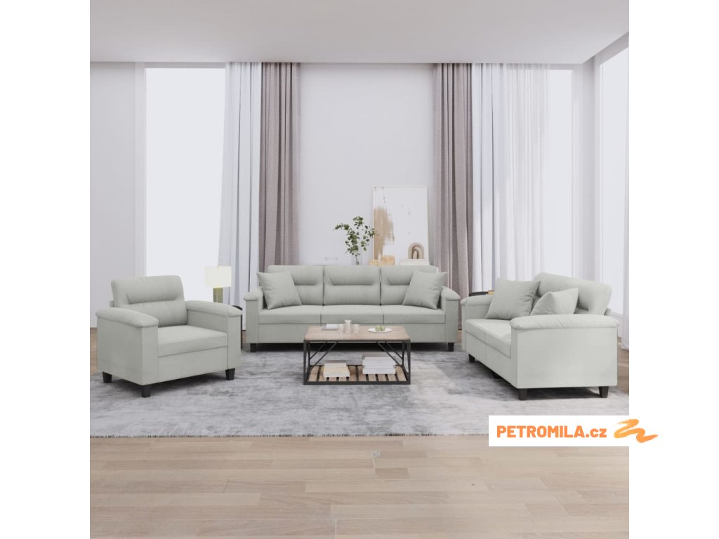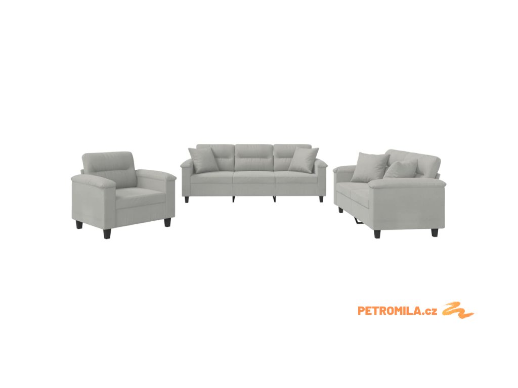 3dílná sedací souprava s polštáři světle šedá mikrovlákno