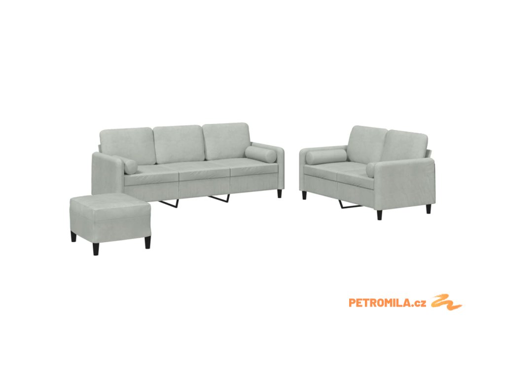 3dílná sedací souprava s polštáři světle šedá samet