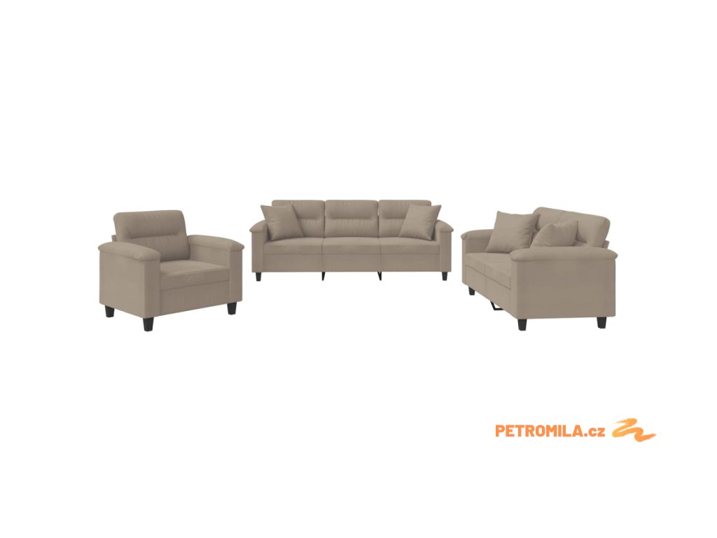 3dílná sedací souprava s polštáři taupe tkanina z mikrovlákna