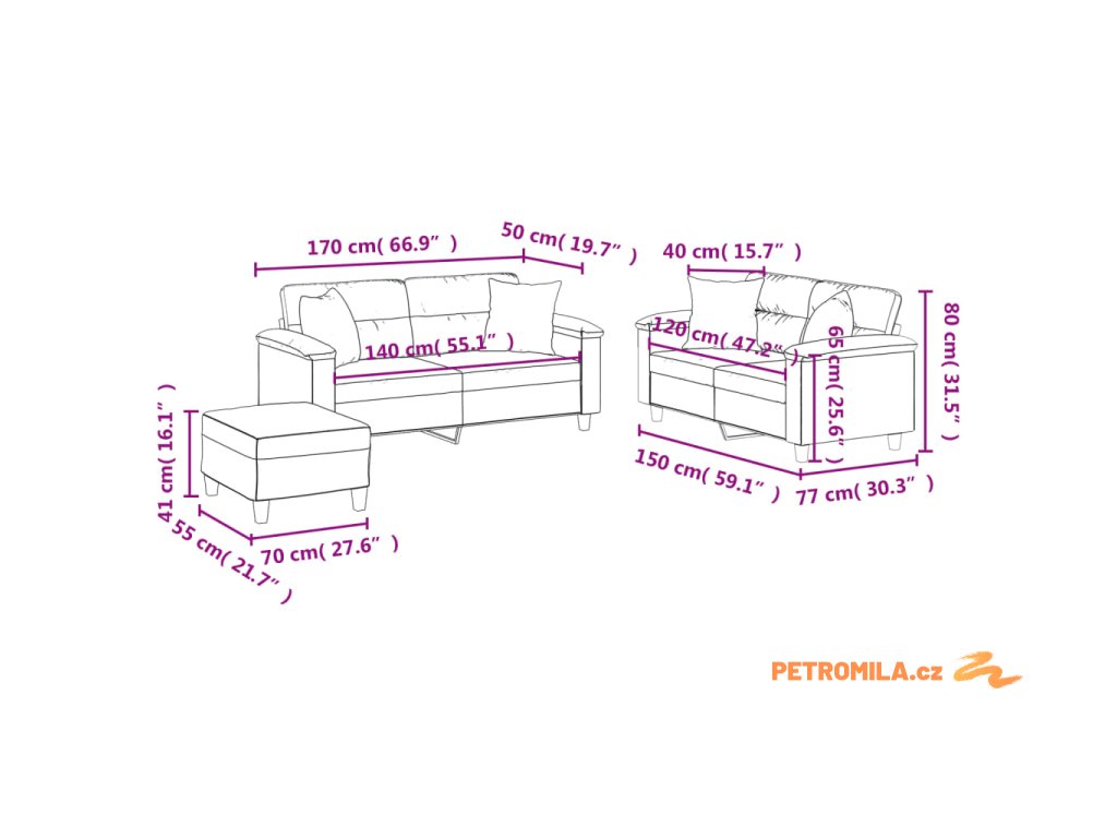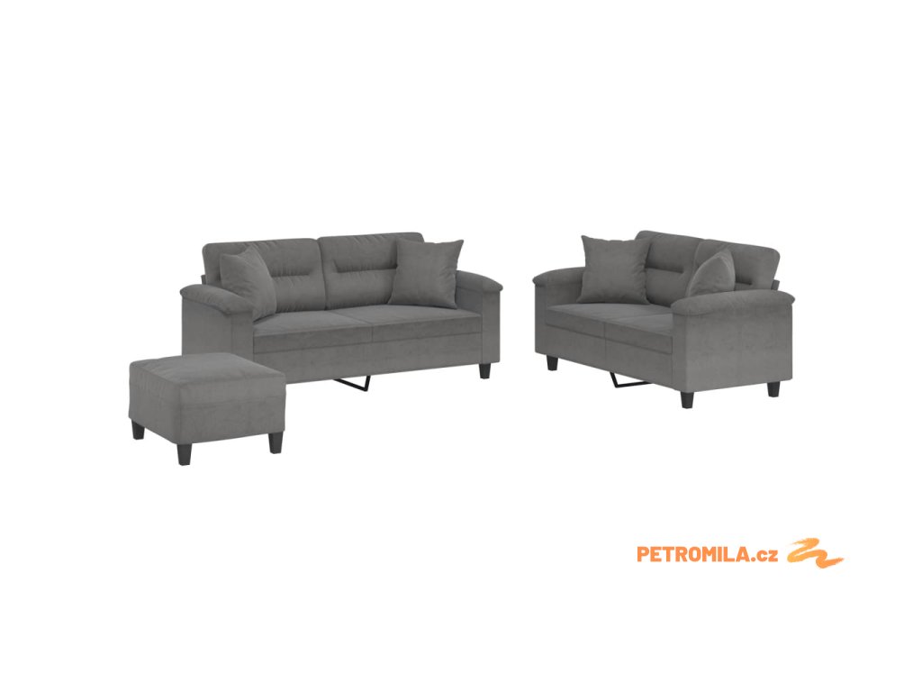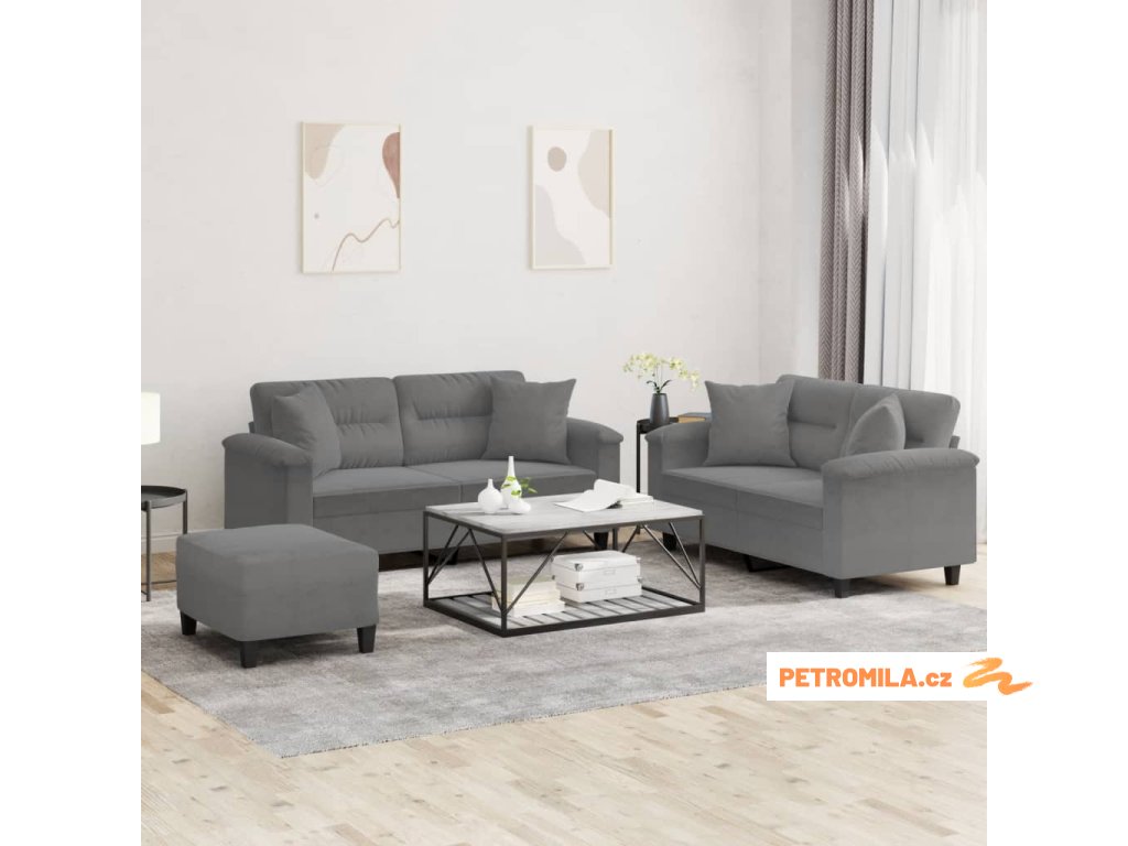 3dílná sedací souprava s polštáři tmavě šedá mikrovlákno