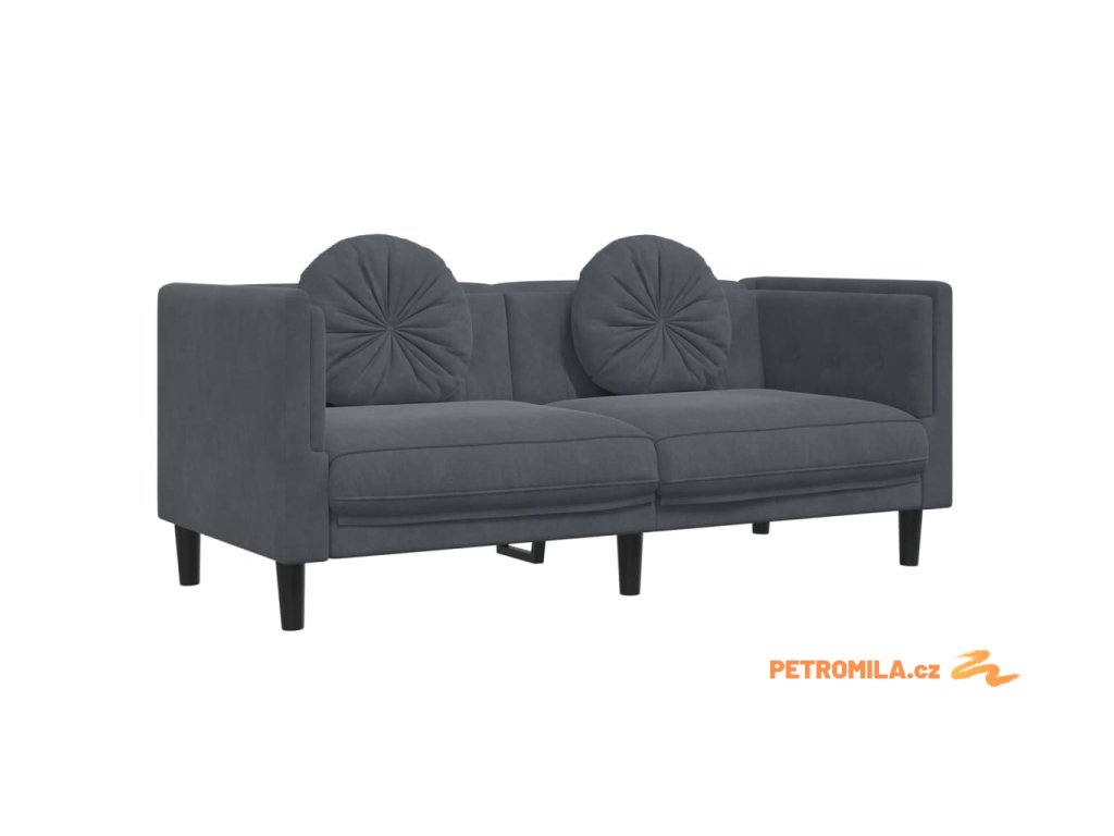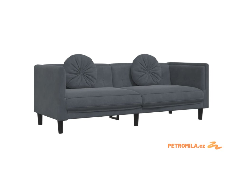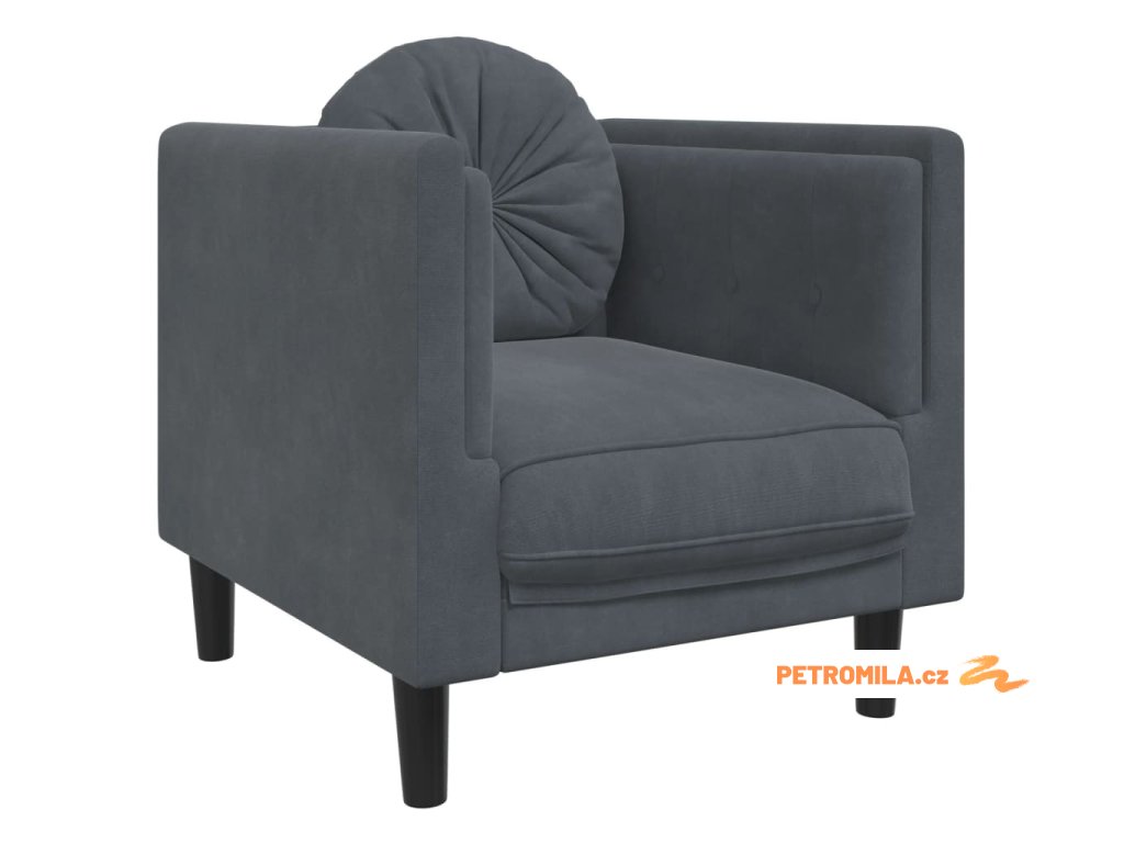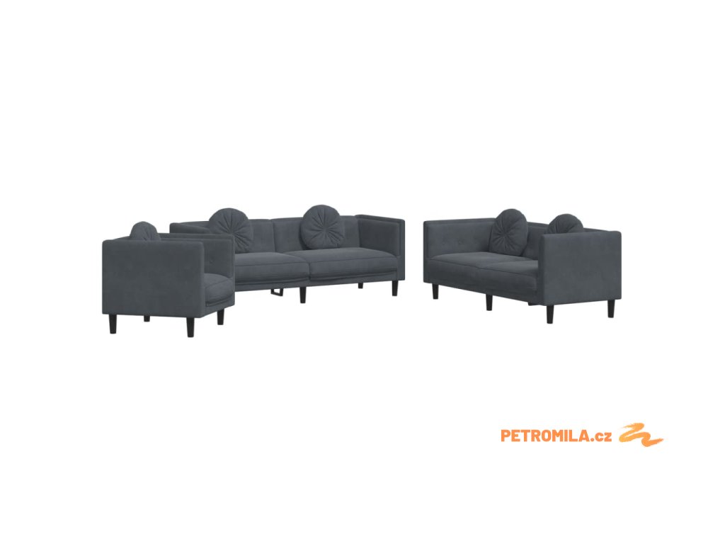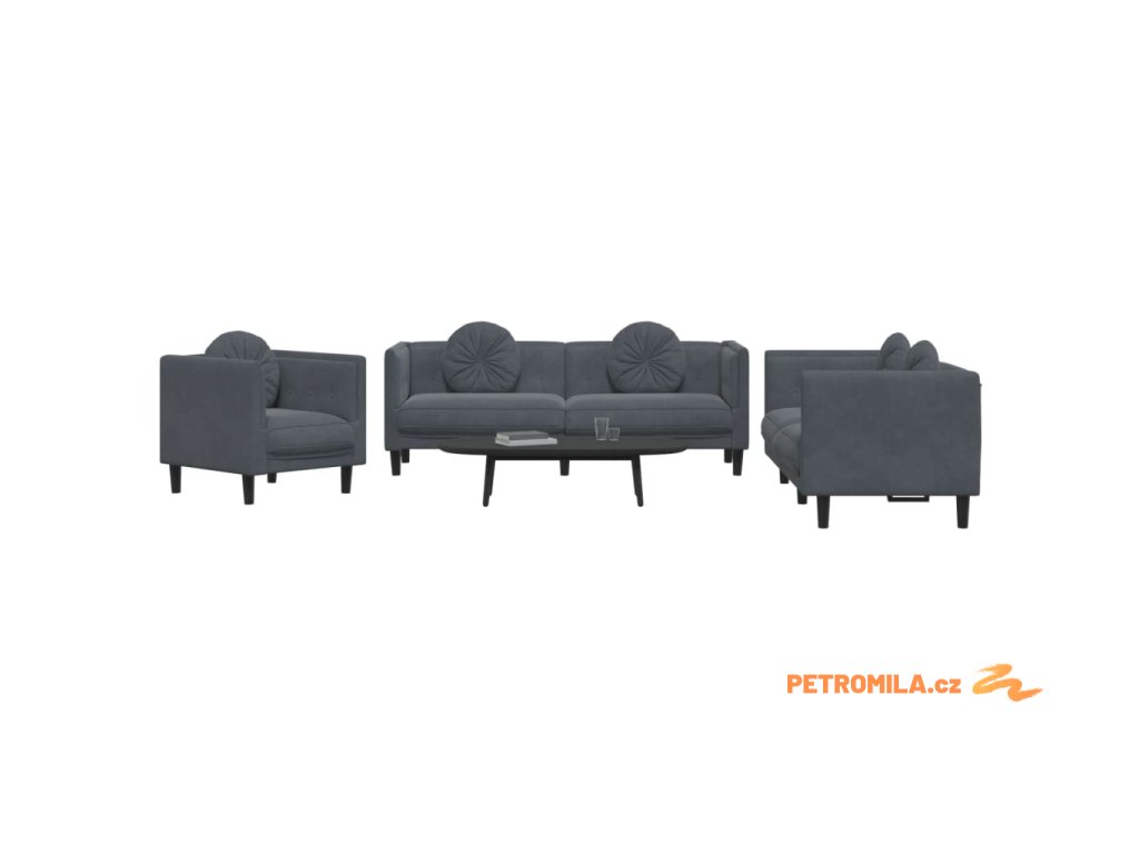 3dílná sedací souprava s polštáři tmavě šedá samet