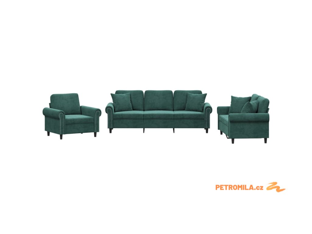 3dílná sedací souprava s polštáři tmavě zelená samet