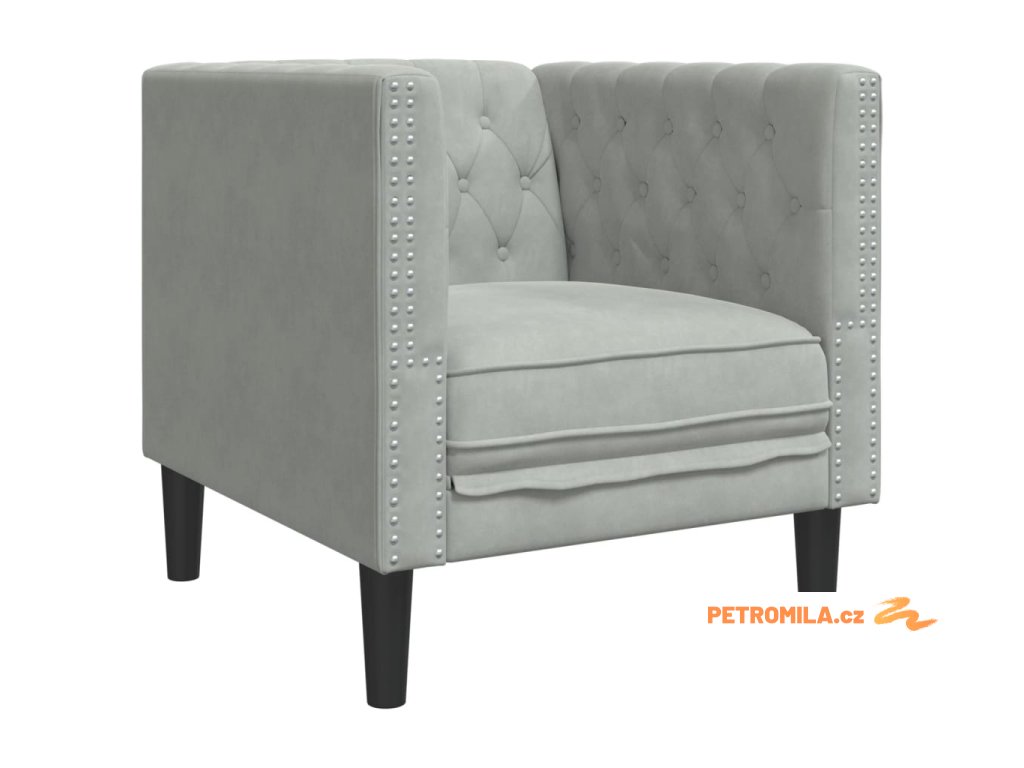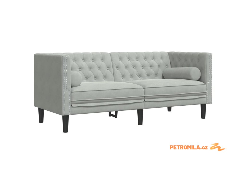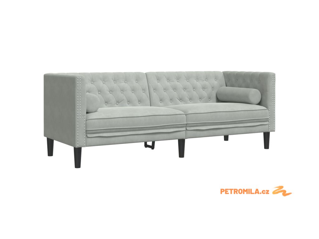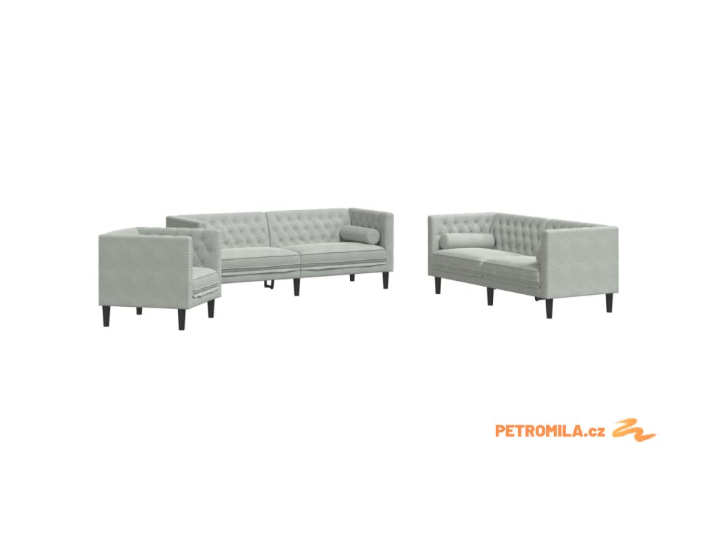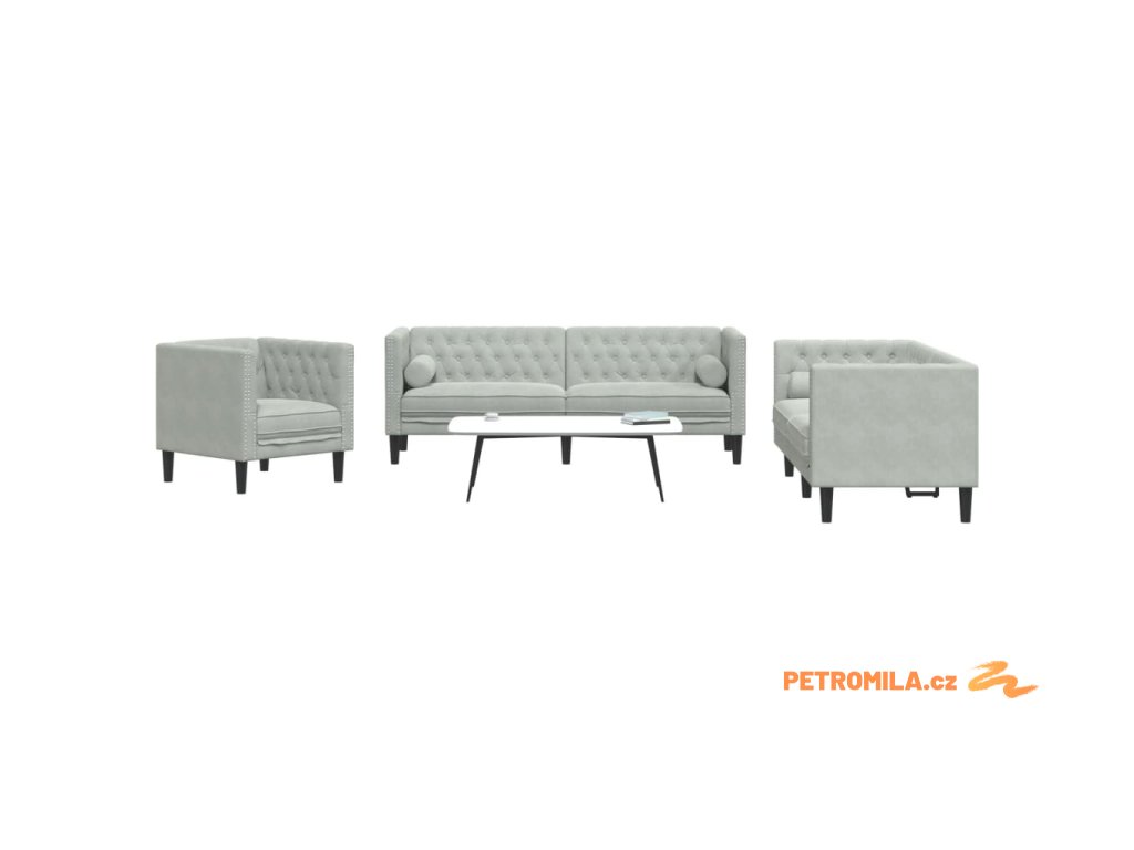 3dílná sedačka Chesterfield s podhlavníky světle šedá samet