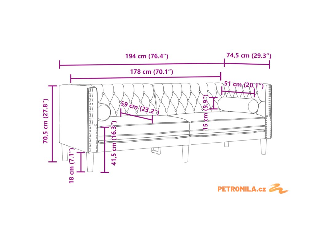 - Styl Chesterfield: Díky klasickému knoflíkovému čalounění opěradla a područek a jejich jednotné výšce pohovka pozvedne každou místnost a zajistí styl i pohodlí.